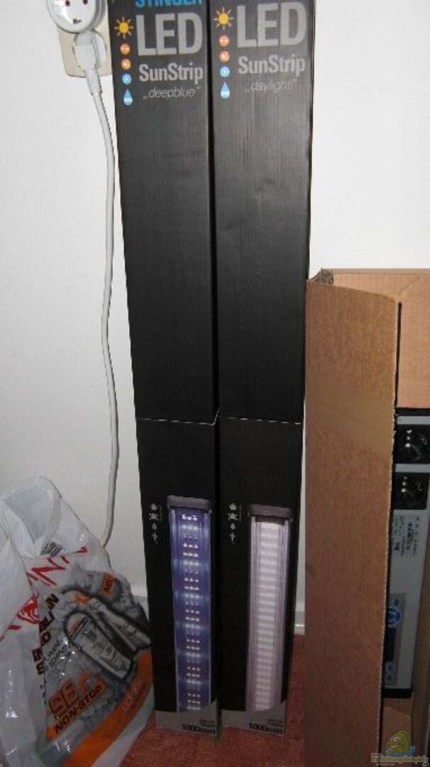 eingebaut sind beide Balken in einen GLO- Lichtbalken, kleiner Nachteil, es passt nur ein Balken mit der dafür vorgesehenen Adapterhalterung in die T5 Fassung und nicht beide, so das man beide aneinander binden muss,