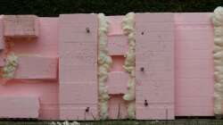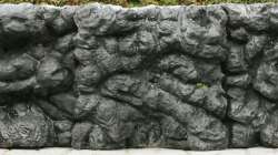 12cm XPS-Platten (etwas fester als Styropor) mit PU-Schaum verklebt, mit dem "Fein Multimaster" (sensationelles Teil - aber Teppichmesser geht auch :) ) Strukturen eingearbeitet, 2cm Fliesenkleber mit schwarzer und brauner Dispersionsfarbe vermischt aufgetragen, XPS an der Hinterseite so viel als möglich ausgehöhlt/weggebrannt. Rückseite etwa 0, 5cm Fliesenkleber. Zum Schluss hab ich die Vorderseite noch mit Epoxidharz versiegelt und in das noch feuchte Harz schwarzen Sand eingestreut.