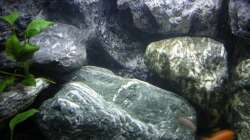 Die Rückwand wurde 3 Wochen vor dem einsetzten der Fische gewässert.