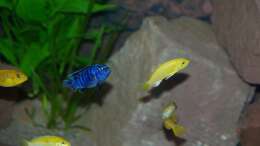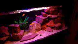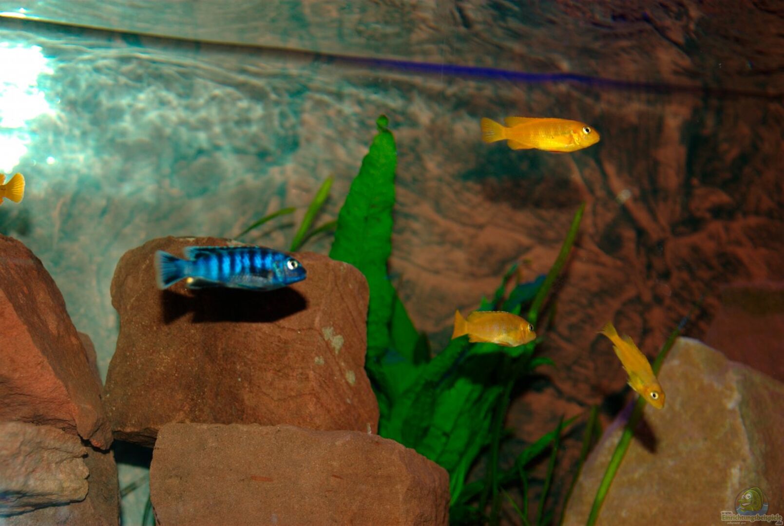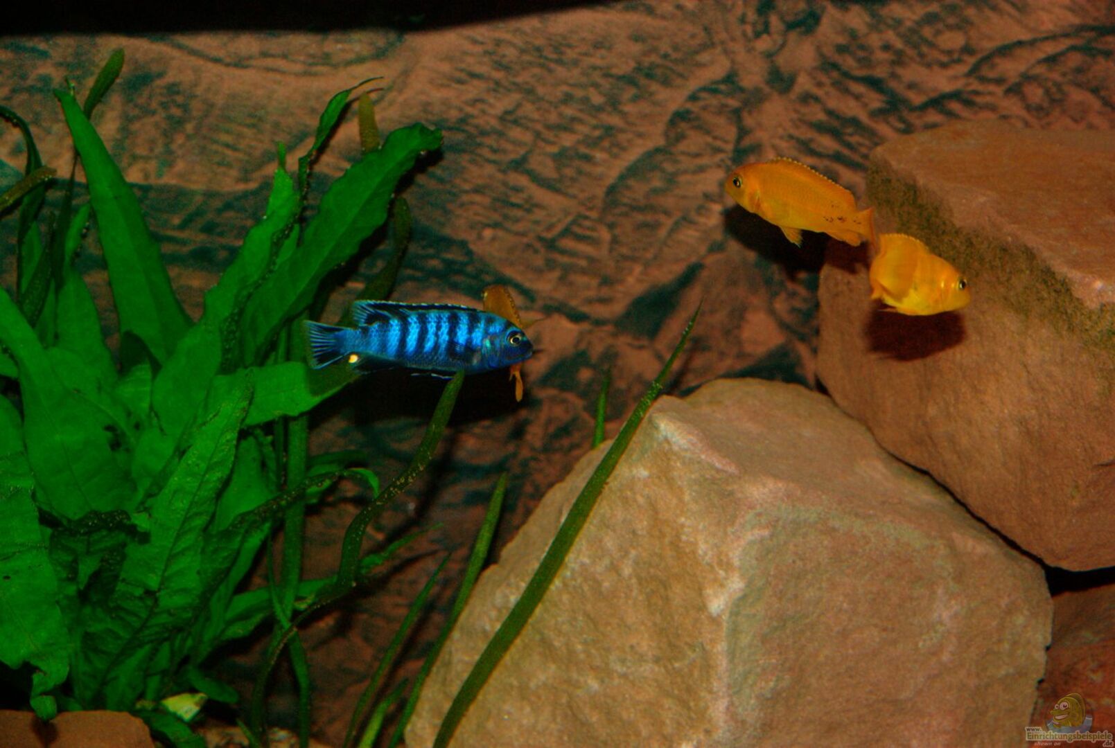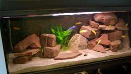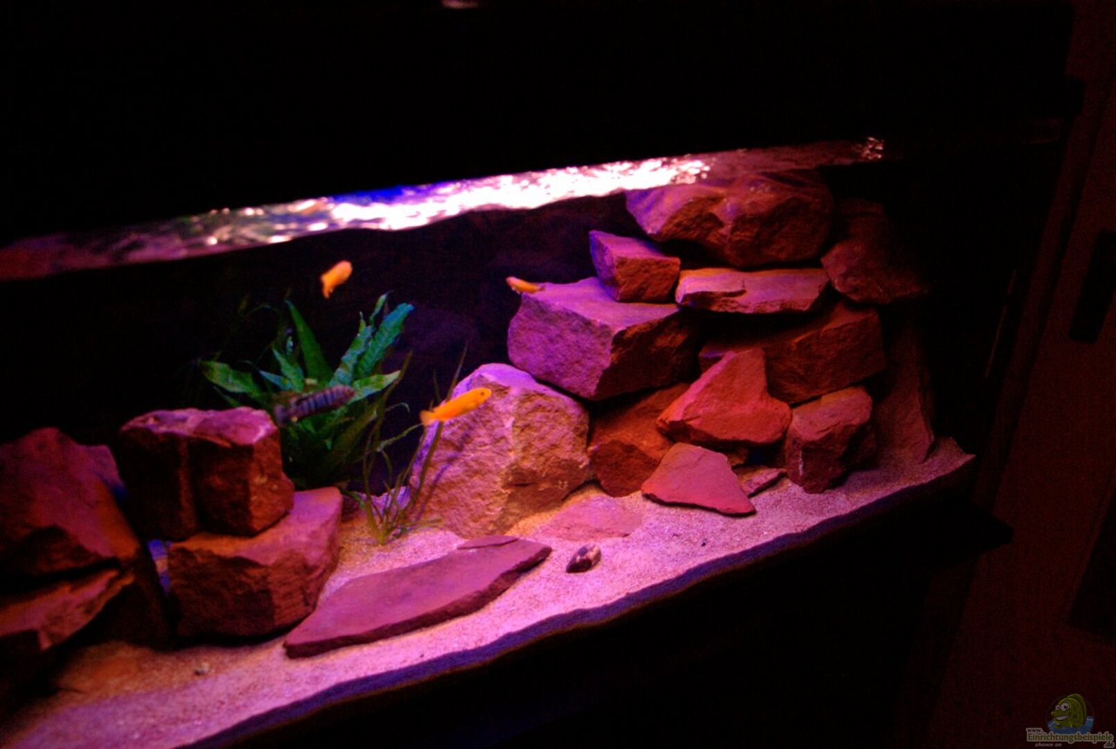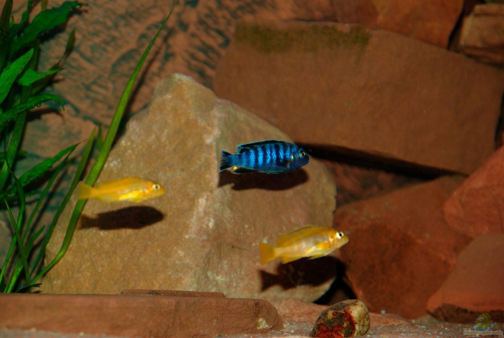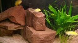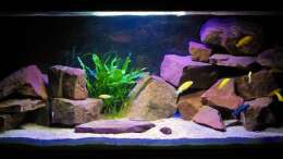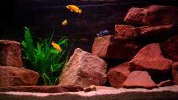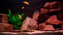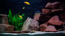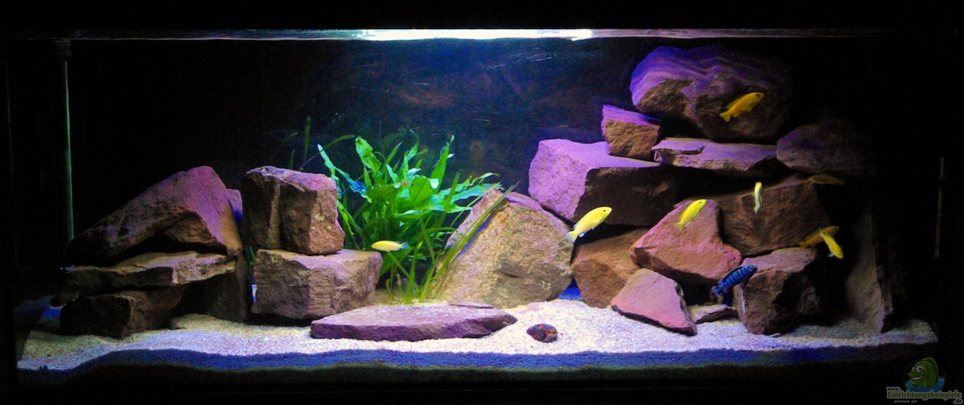 Links der Steinhaufen ist ein bisschen niedriger da ich bei anderen Becken beobachtet habe da?? die Yellows gerne über den Felshaufen rumwuseln. Wenn es ??rger zwischen den Mbunas gibt werde ich den linken Steinhügel noch erhöhen um 2 gleichwertige Reviere zu schaffen was aber für die Yellows nicht notwendig sein sollte.