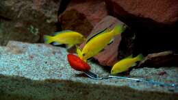 1/4 Yellos sind ins Becken eingezogen. Nach ein paar Minuten versteckspiel stehen sie jetzt schon gemeinsam mit den Saulosis in der Strömung und drehen Piruetten.