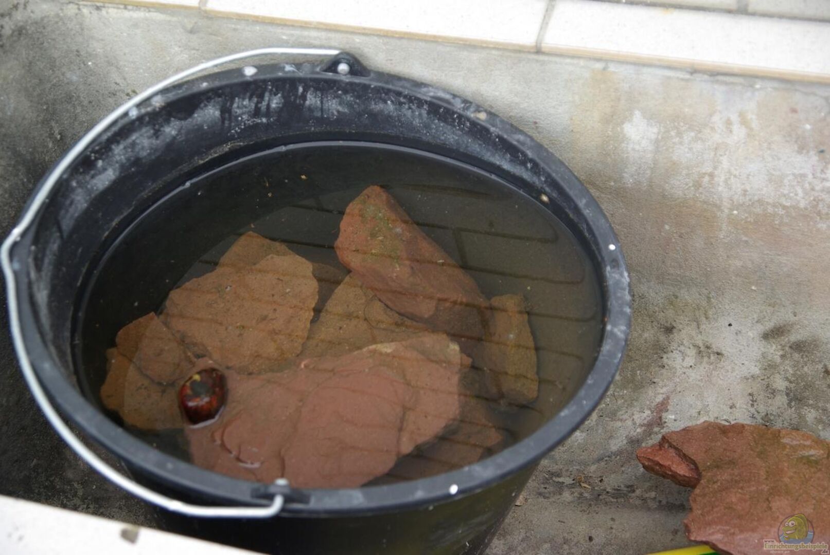 Dieser Steinhaufen ist das Revier meines Saulosibocks, ausserdem befinden sich im hinteren Bereich auch kleinere Höhlen als Versteckmöglichkeit für den Nachwuchs.