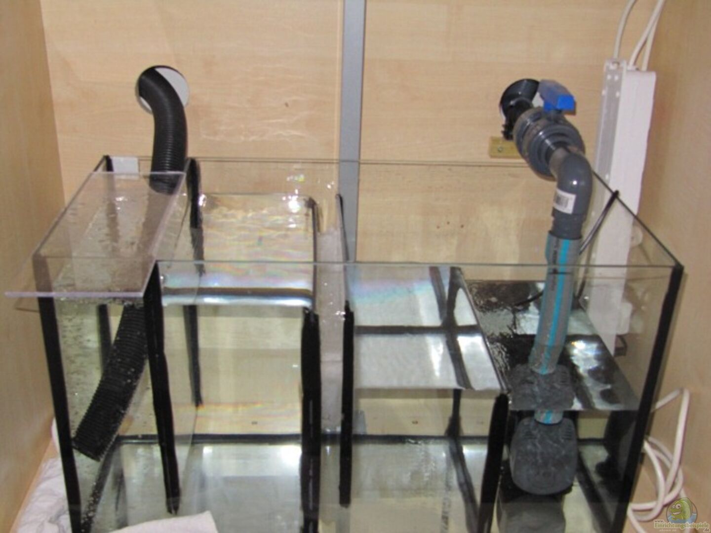 - Verdunstungswasser wird (noch) mit separater Steuerung & Pumpe aus einem Fass neben dem Aquarium nachgefüllt