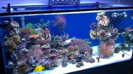 Seit über einem Monat sieht er aber nicht gut aus. Ich habe mir mit neuen Korallen!! die Seuche ins Becken geholt. Seit einem Monat habe ich jetzt meine 65W-UVC immer laufen und füttere nebenbei noch mit Punktol getränktes Granulatfutter. Seit einer Woche wird es jetzt langsam besser.