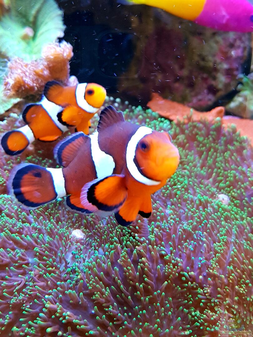 2 Clowns, 1 Riffbarsch Pseudochromis Paccagnellae, 2 Garnelen = 1Weisband Putzergarnele und eine Wundermanni, Schnecken und Einsiedler.