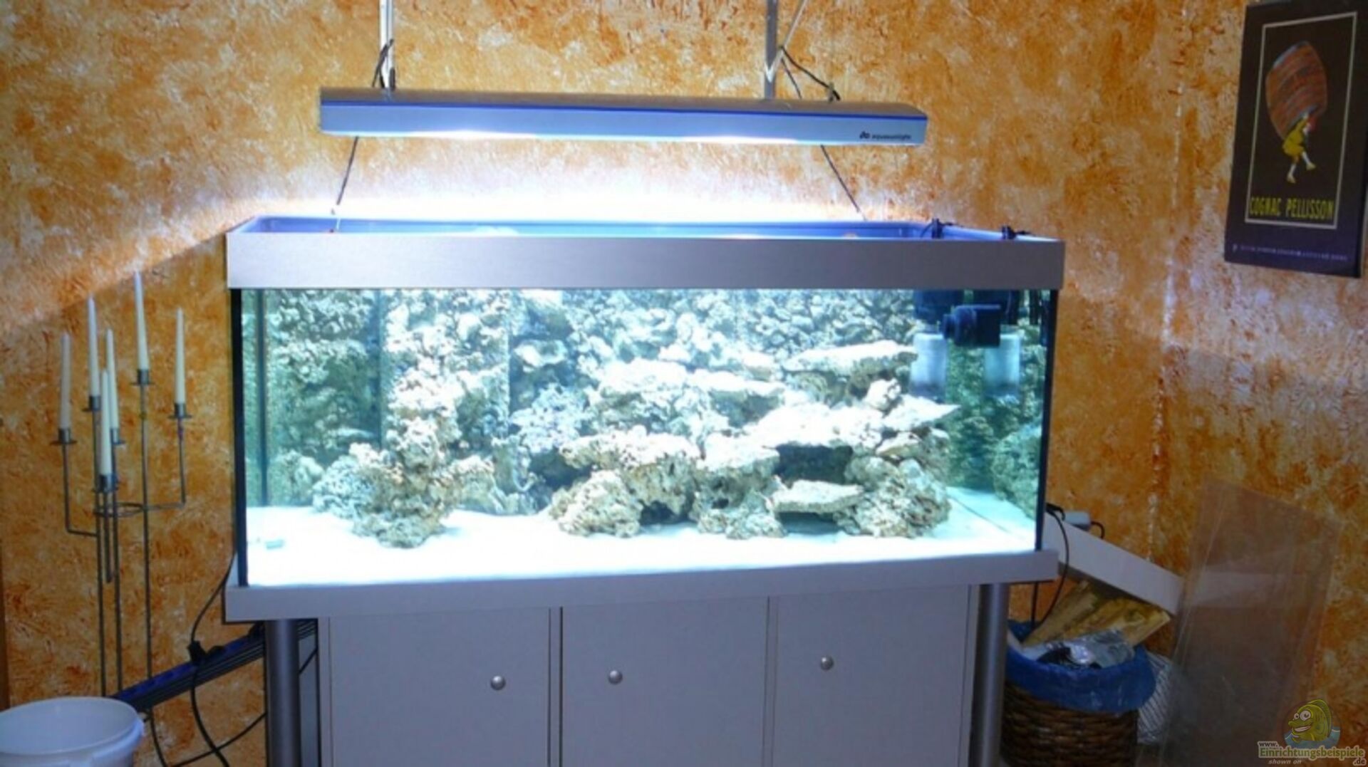 2x 250 Watt HQI (Brenner Giesemann Megachrome 12.500 K) und 4x54 Watt T5 (3x actinic blue 1x Vollspektrum)