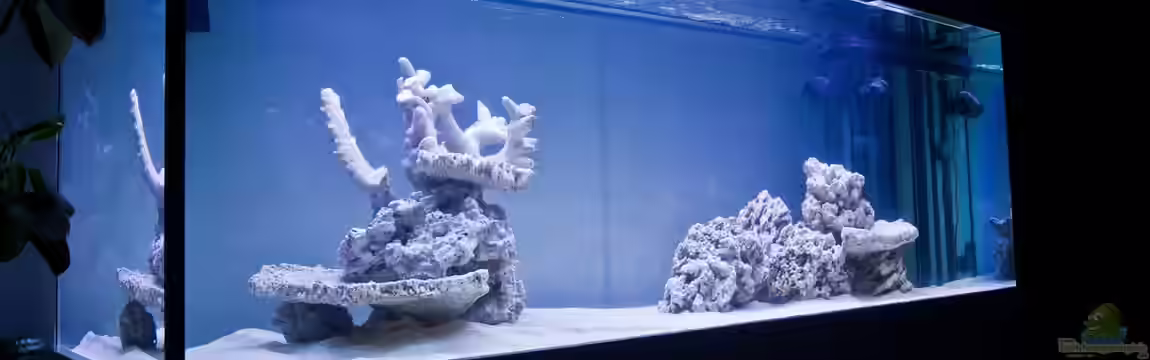 In den letzten 2 Wochen habe ich das 35 kg totes Riffgestein gründlich gereinigt und gewässert. Der Bodengrund 1 - 2 mm Korallenbruch wurden ausgespühlt und in das Aquarium gegeben. ??ber meine Osmoseanlage habe ich das Becken befüllt und nach und nach das Salz hinzugegeben bis die optimale Salinität erreicht wurde. In 1 Woche kommt das Lebendgestein. Es könnte sein, dass ich daraufhin wieder etwas totes Gestein entnehme, sodass das Aquarium nicht überladen wirkt. Ich möchte es so gestalten, dass das Riff von allen Seiten umschwimmbar ist.