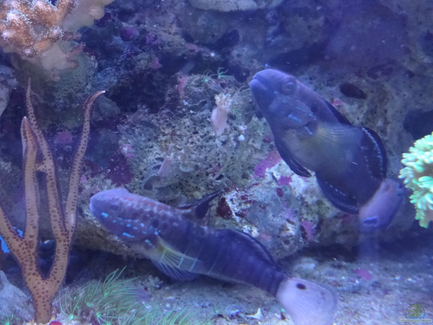 Eine farbenfrohe Grundel, die aktiv den ganzen Tag damit beschäftigt ist, den Bodengrund sauber zu halten. Frisst Fadenalgen sowie auch Cyanos, welche bei mir auch von den Steinen aufgenommen wurden. Hat leider den Nachteil, das diese Baggergrundel mitunter bis zu 30cm oder mehr hochsteigt und den Bodengrund über die Deko und Korallen ablässt. Eine Bodenhaltung von Korallentieren wie bspw. Fungias ist bedenklich bei der Pflege dieser Baggergrundel.