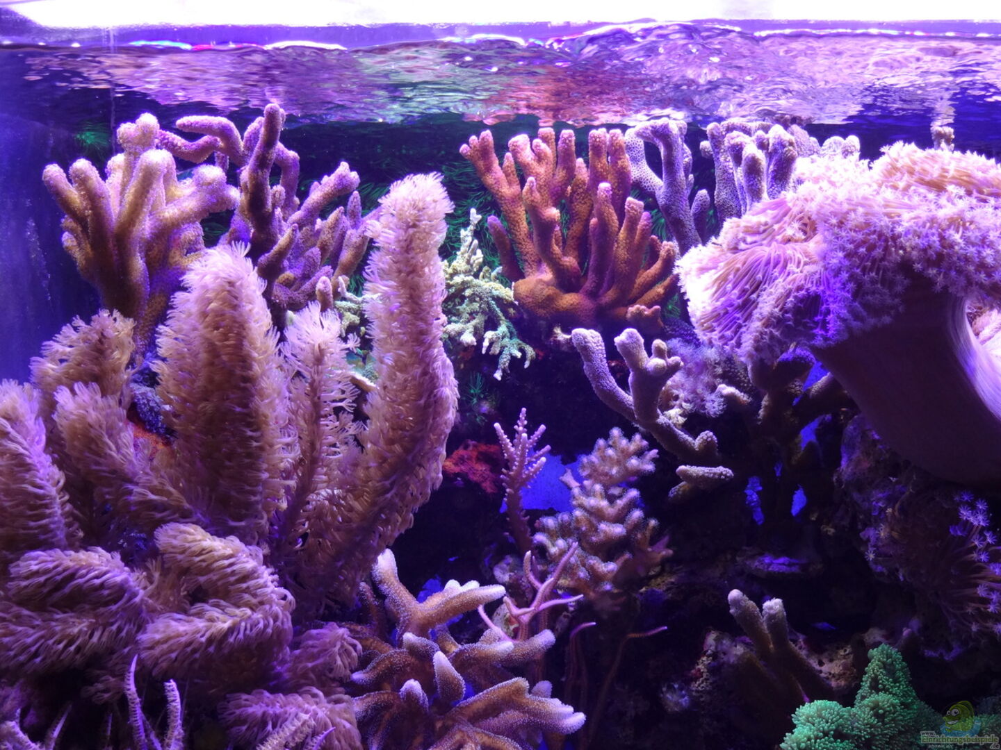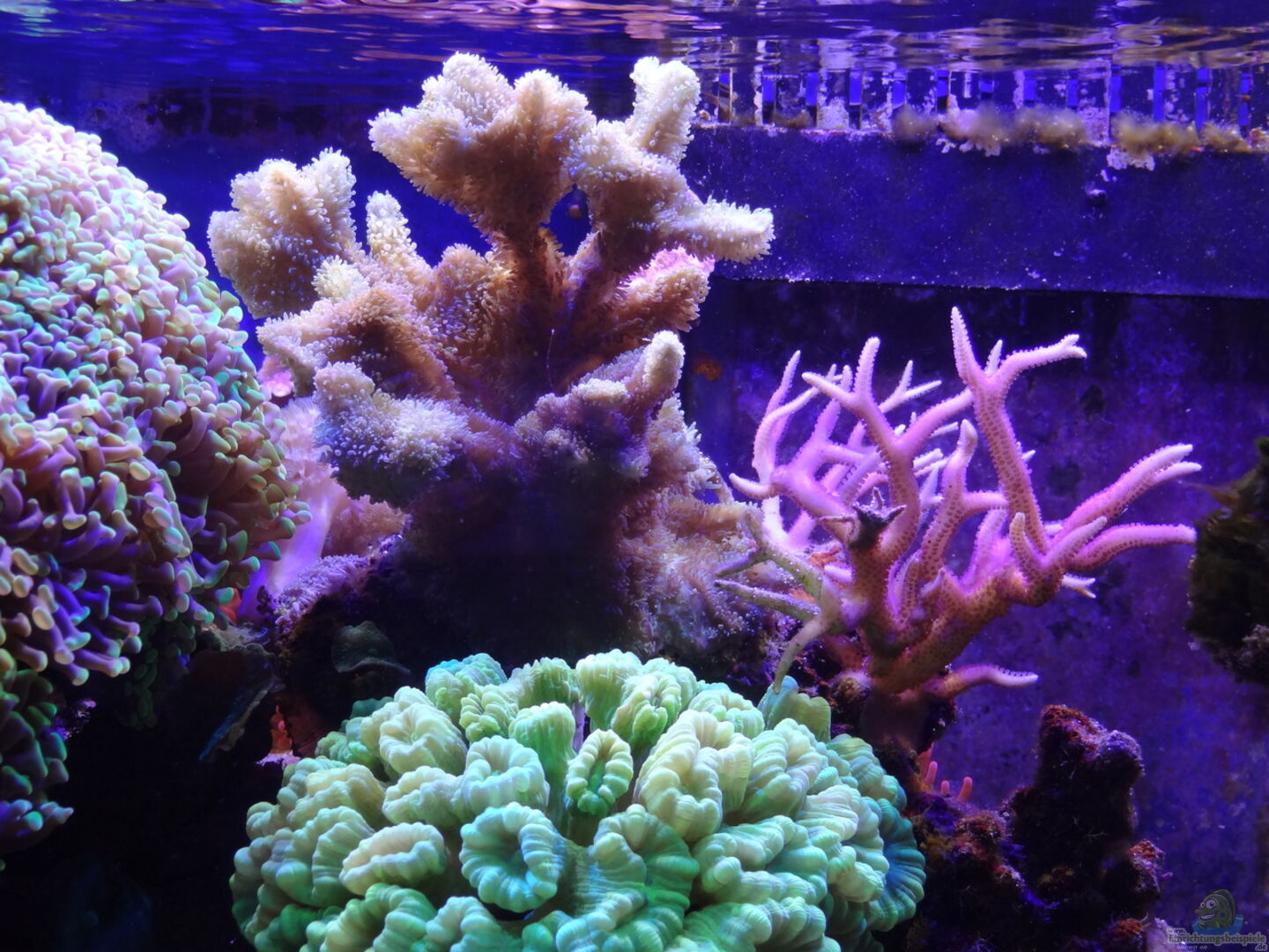 Seit einem Monat eine neue LED Beleuchtung mit 150W. Sie ist eine komplette Eigenentwicklung, also Platinen, Software auf dem Microkontroller der Lampe und die PC-Software. PC und Lampe sind über Bluetooth koppelbar. Die Lampe kann mit den Kanälen Wei??, Blau, Rot und UV separat gedimmt werden. Seit der neuen Lampe wachsen die Korallen gefühlt doppelt so schnell, was ich auch daran merke dass die Balling-Lösungen andauern leer sind.