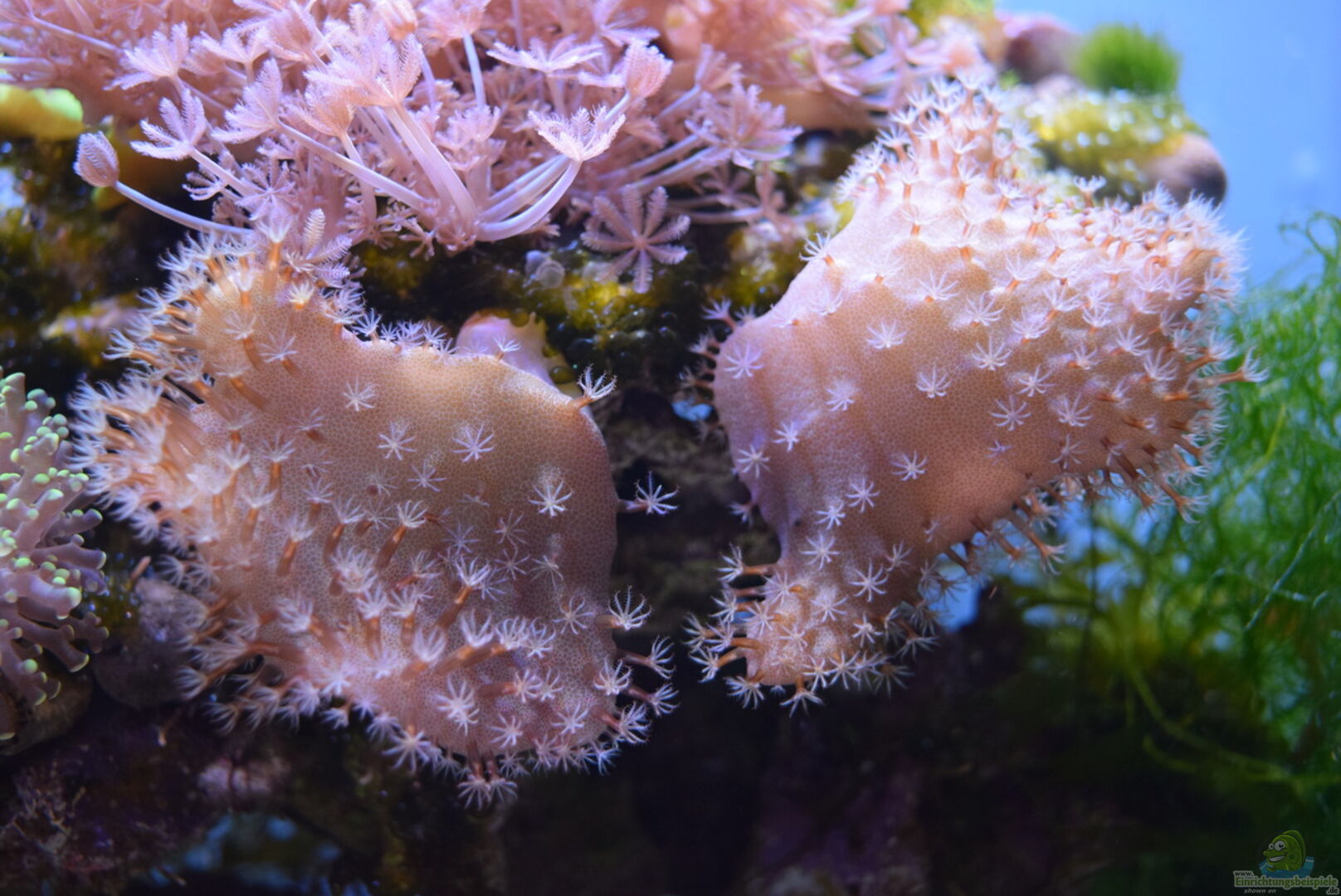 30.03.2015 Einzug einer weiteren Clavularia, schöne Kolonie auf einem Stein, Einzug Euphyllia paradivisa (grüne Variante)