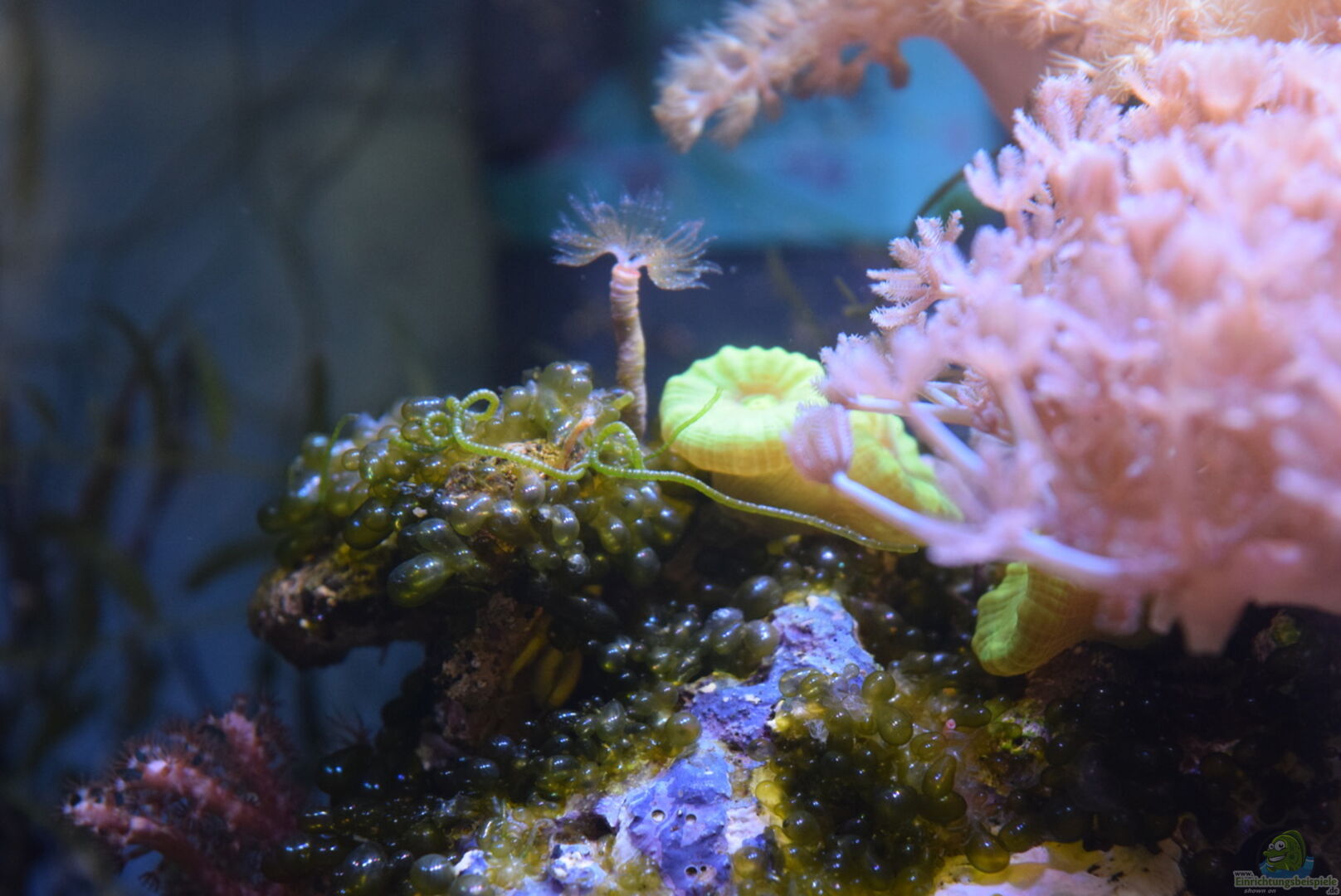 09.02.2015 Einzug neuer Bewohner: Clavularia viridis, schöner Stein mit verschiedenfarbigen Krustenanemonen, Pärchen Stenopus cyanoscelis - Blaubein-Scherengarnele, Büschel Halymeda
