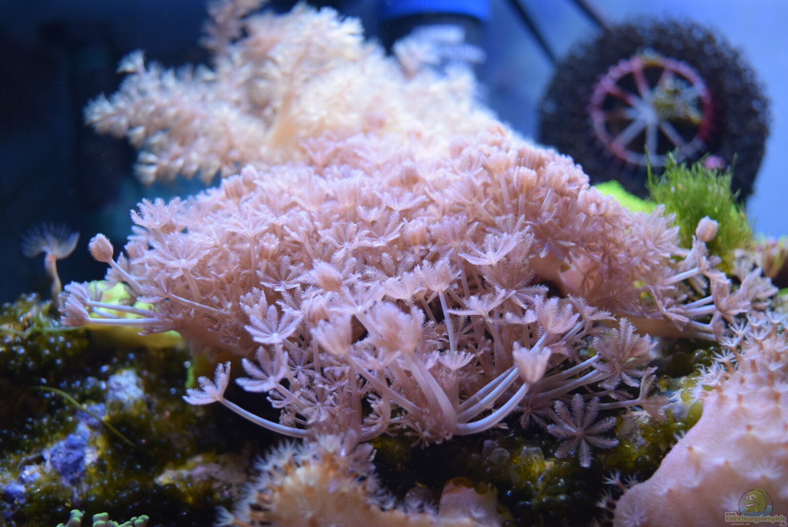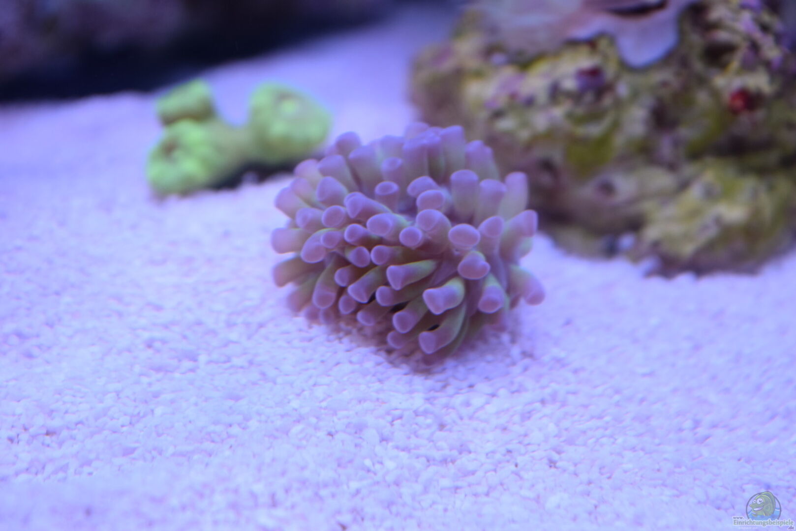 Die Pflege hat sich mittlerweile auf den 3 wöchigen Wasserwechsel (10 Liter), den Einsatz von Aktiv-Kohle und den täglichen Einsatz von All4Reef und ProCoral Elements eingespielt. Füttern nicht zu vergessen ;)