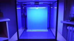 Das Aquarium selbst ist von EFS und ist mit 2 Stegen ausgestattet, auf denen die Abdeckung und der Glasstreifen für die Beleuchtung aufliegt.