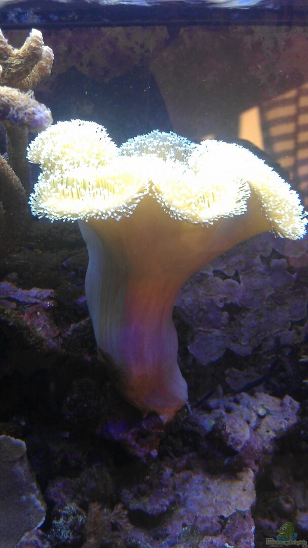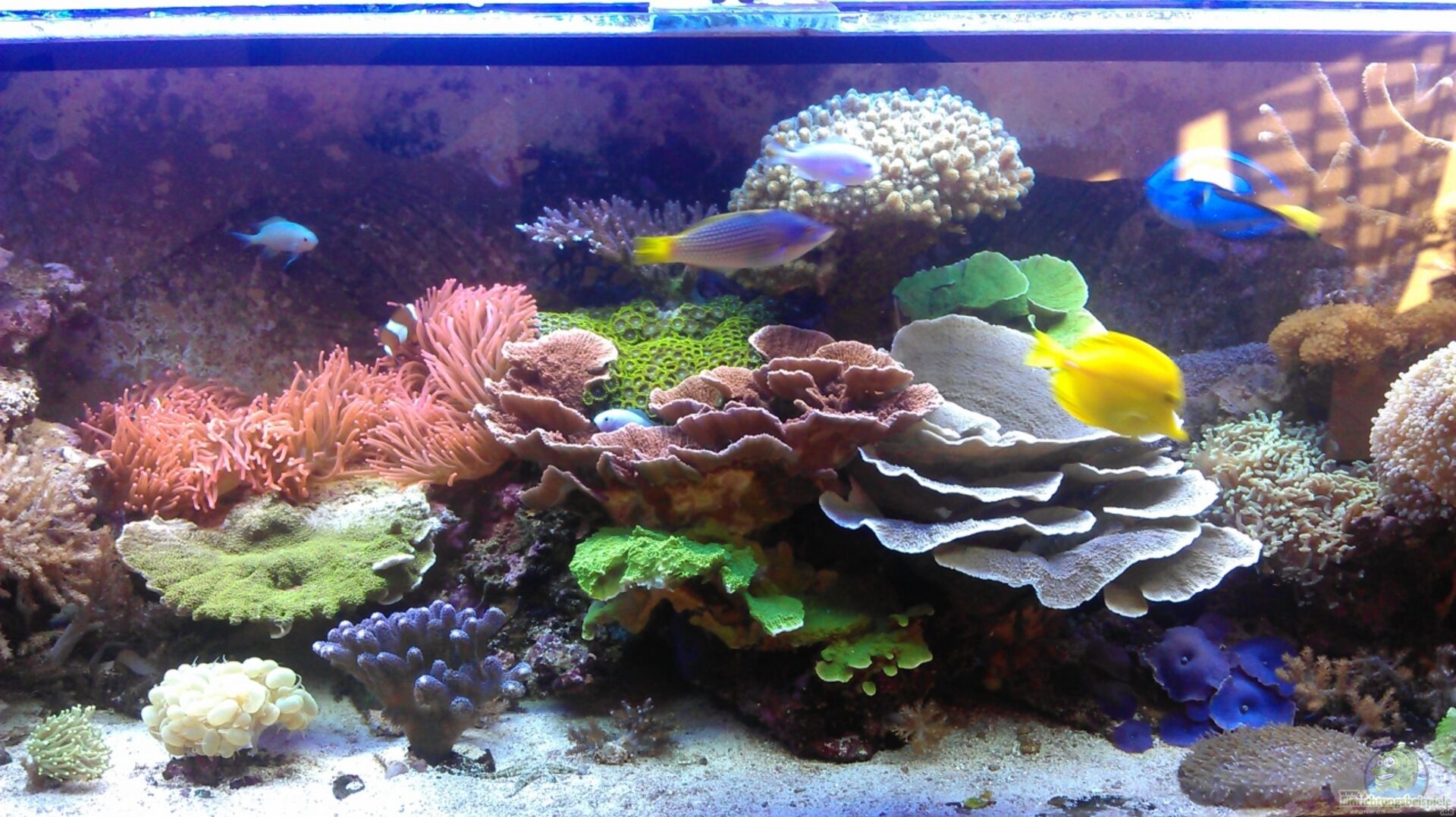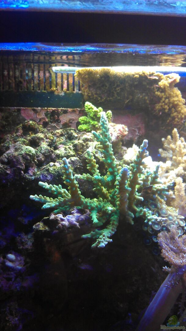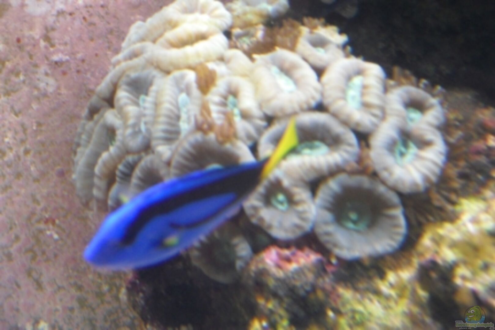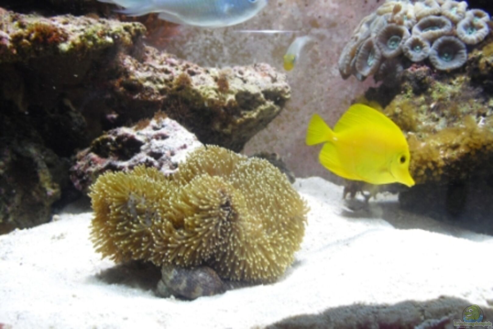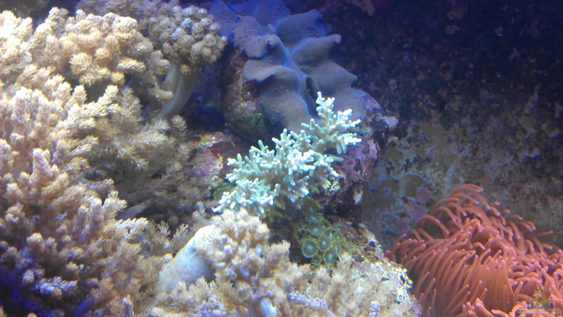 Ein Teil von diesem Becken (25 Kilo Lebendgestein und div. Fische) stammt aus dem Vorgänger dies war ein 240Liter Meerwasser Becken mit 2Jahre Laufzeit, wie jeder Aquarianer ist der Wunsch nach einem grö??eren Becken immer allgegenwärtig :-) Seit Oktober 2010 läuft diese Anlage jetzt, daher ist noch relativ wenig Bewuchs zusehen.