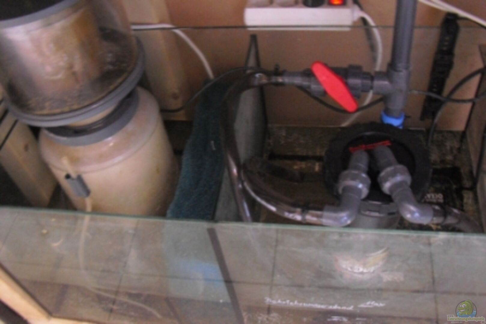 2x Tunze Strömungpumpen 1x 250 Watt Heizstrahler im Filterschacht angebracht.