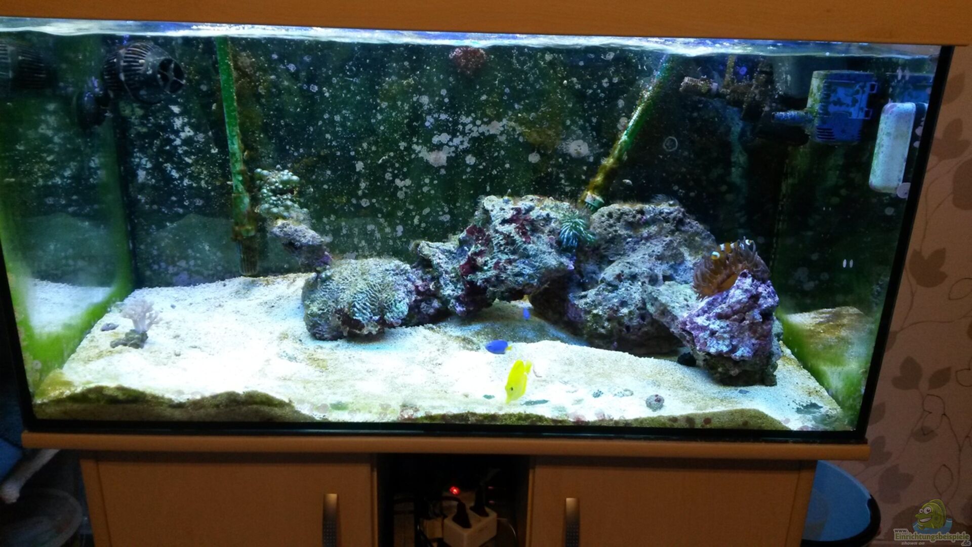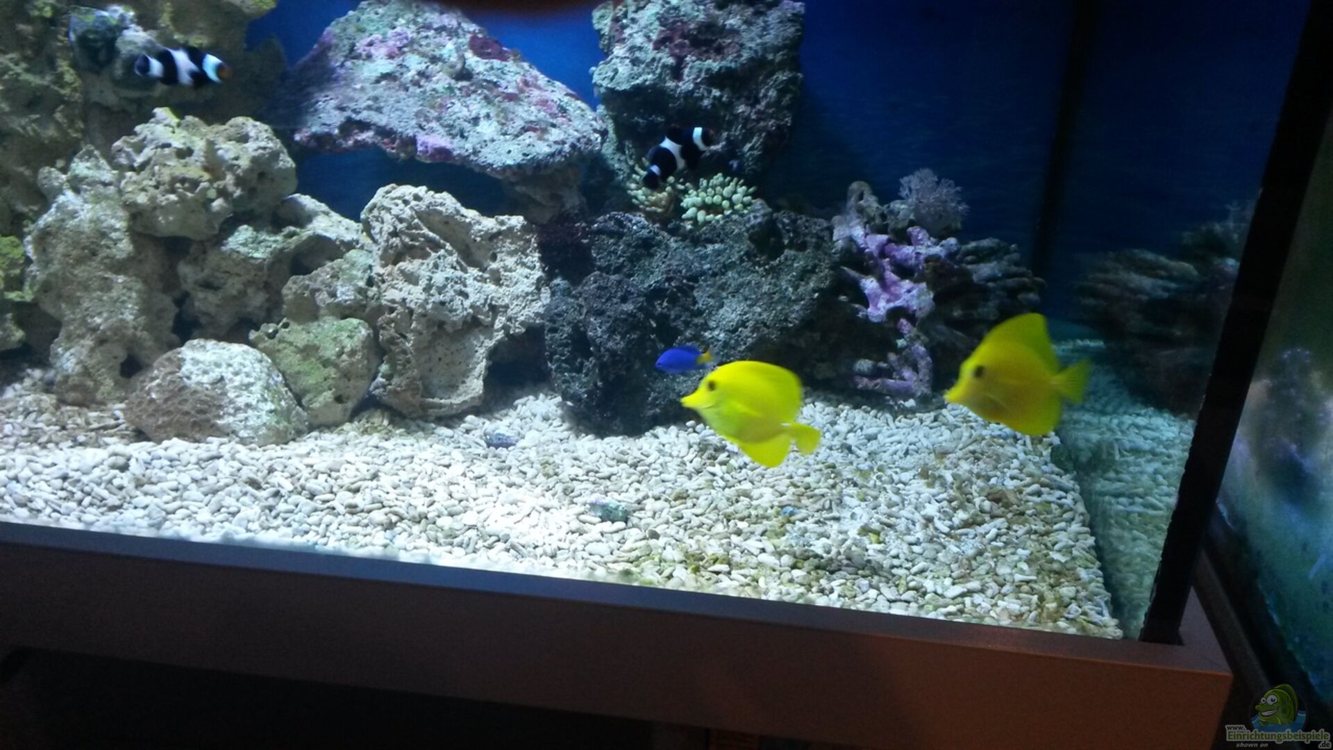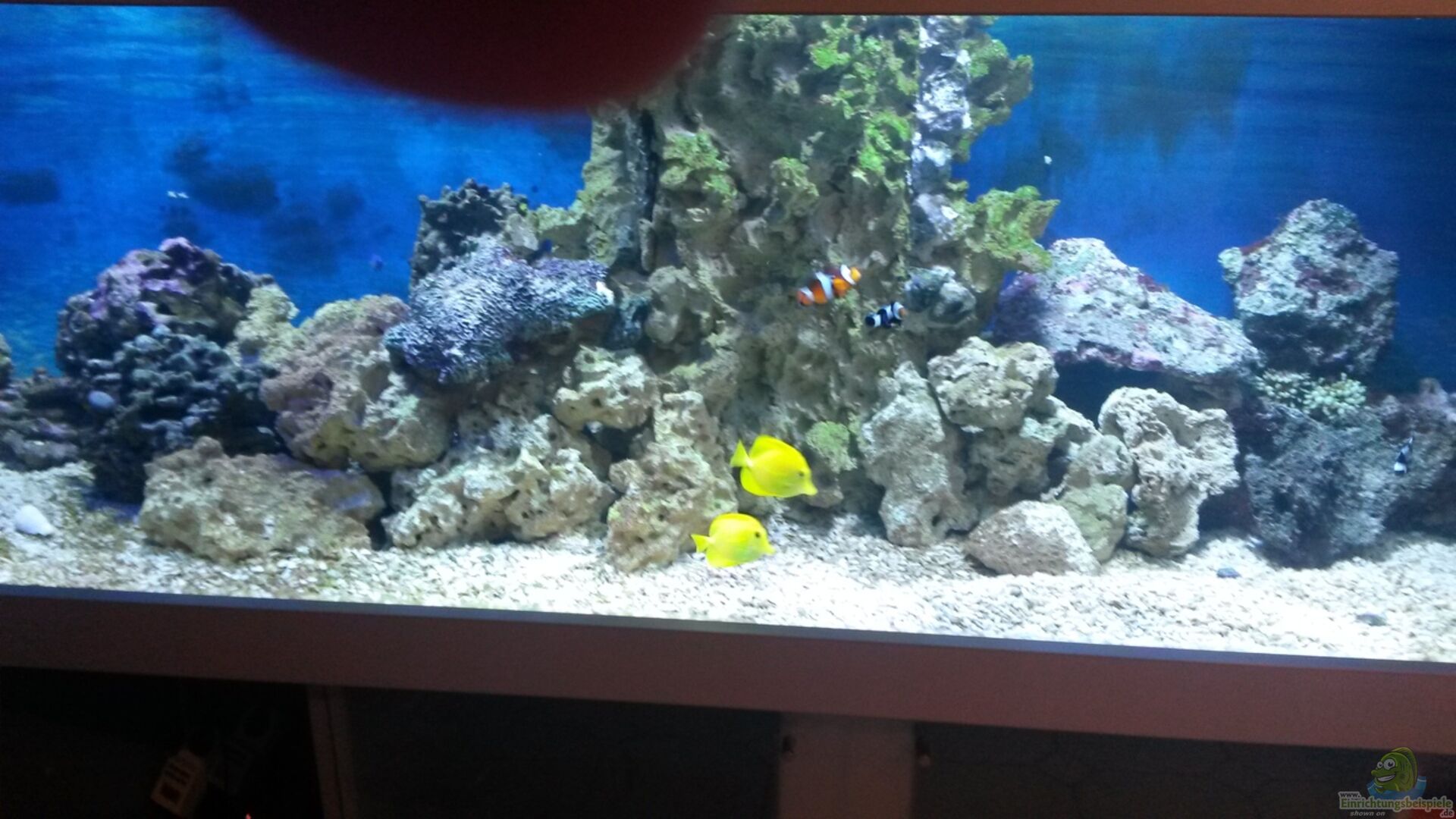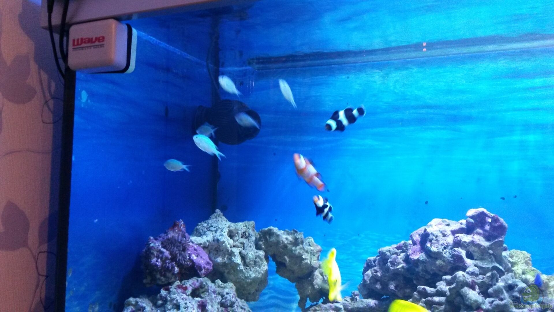 24.09.15 2 Clownfische mussten leider gehen da sie sich nur gekeilt haben. Dafür sind 6 Schwalbenschwänzchen und ein Kardinalbarsch eingezogen.