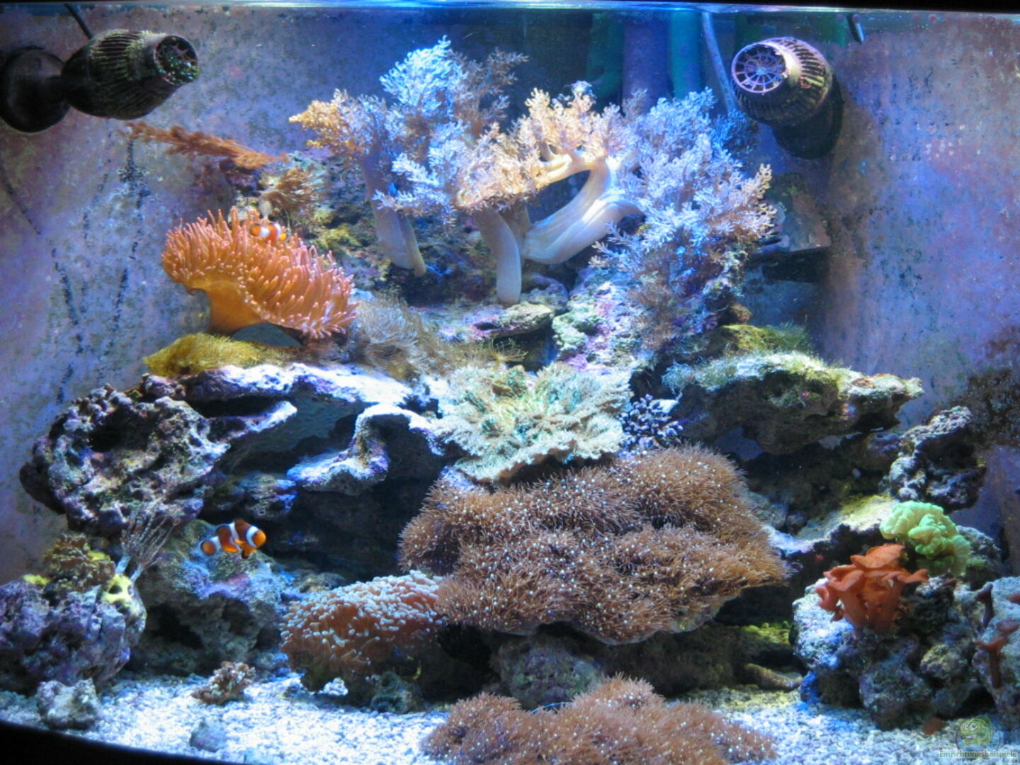 Den Inhalt vom 112l Becken in das Trigon 350 umgesetzt.( Korallenkies, 15Kg Lebendgestein, Korallen und Fische)