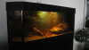 Das Layout wurde etwas aufgelockert und auch die Mitte des Beckens hat Struktur bekommen. Die Heterospila wachsen wahnsinnig schnell, sie sind jetzt zwischen 10 und 12 cm gro??. Ich habe einige wei??e und rote LEDs der Leiste abgeklebt, so ist die Beleuchtung nicht so hell und eher bläulich, sieht super aus.