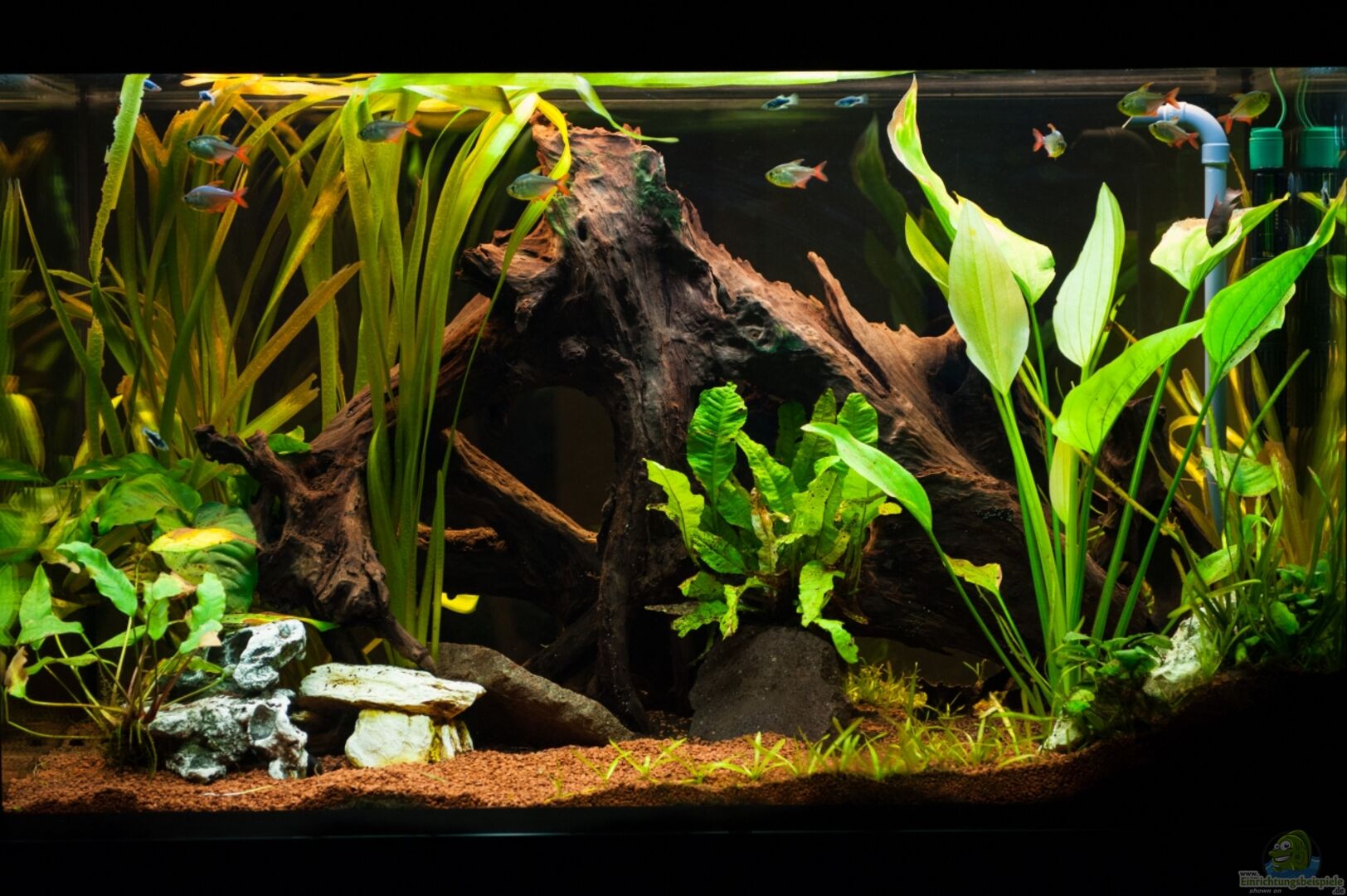Rein optisch aber sehr hübsch dein Becken. Ich könnte mir hier richtig gut einen riesigen Salmler Schwarm vorstellen, zum Beispiel den Blauen Kongosalmler *träum*, vielleicht eine Art Artenbecken ;)