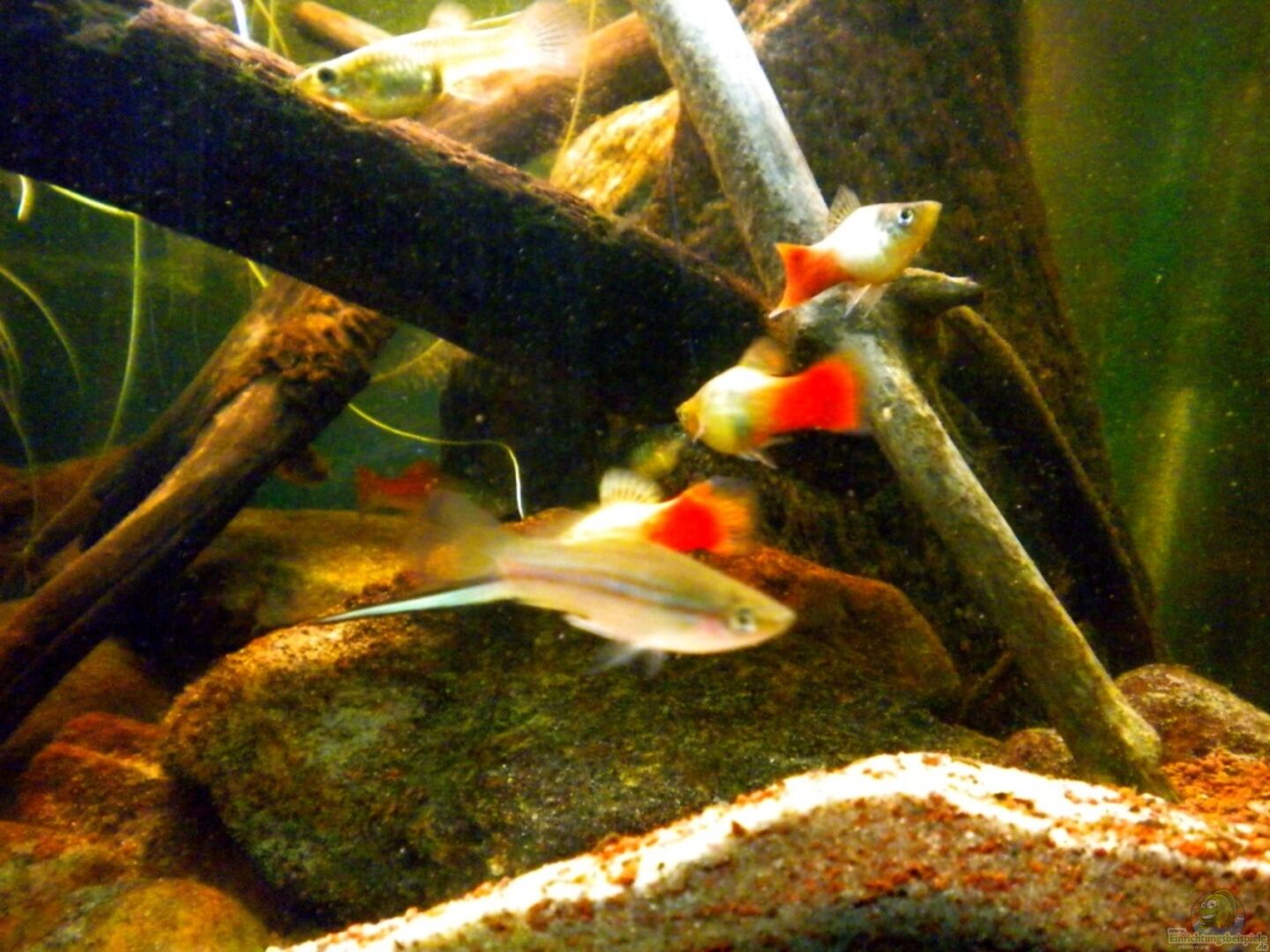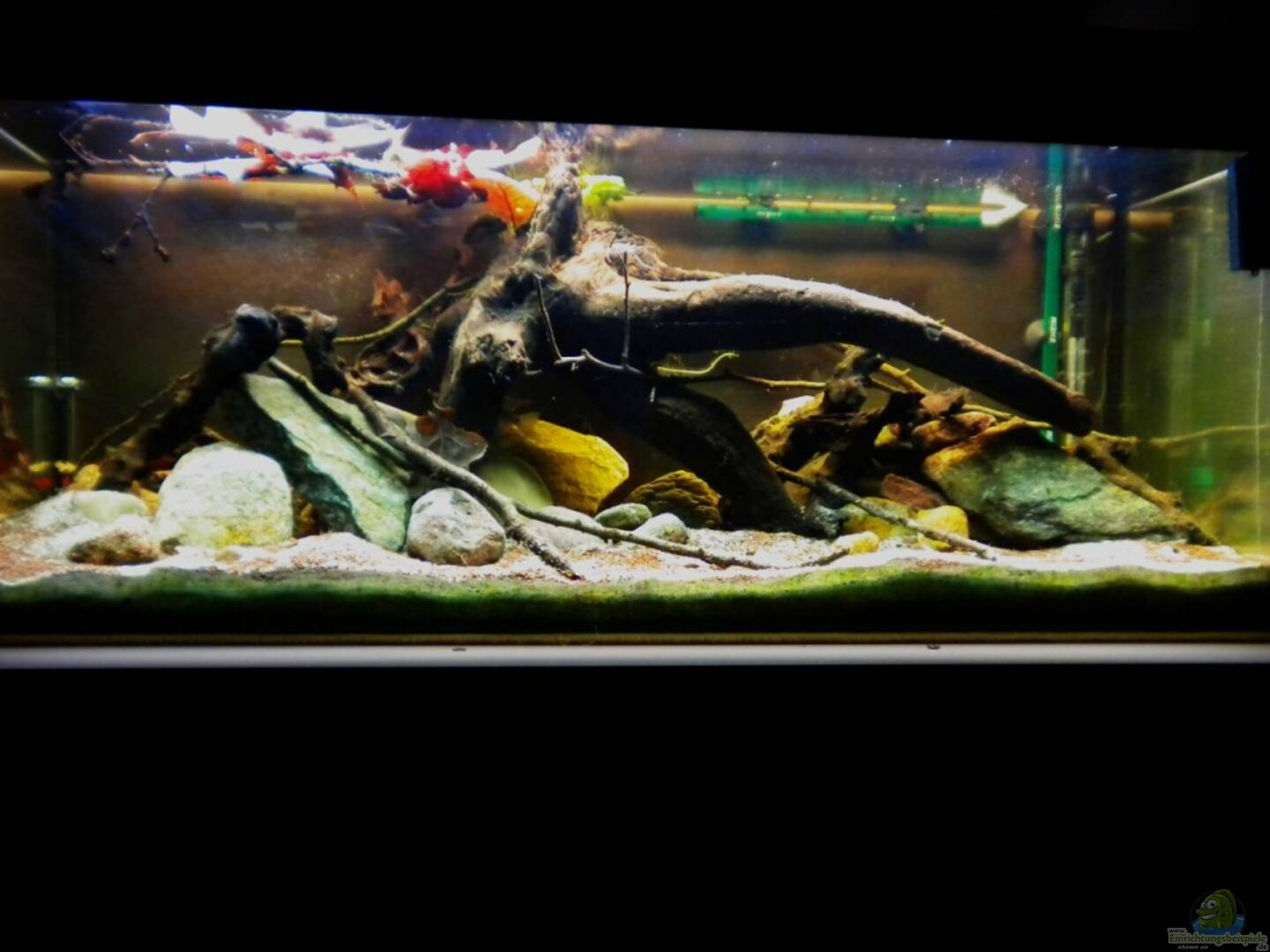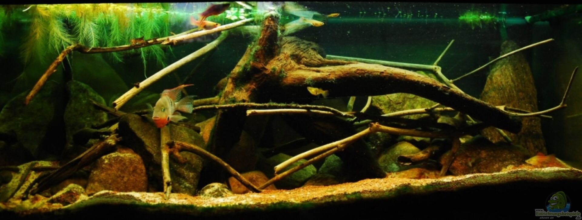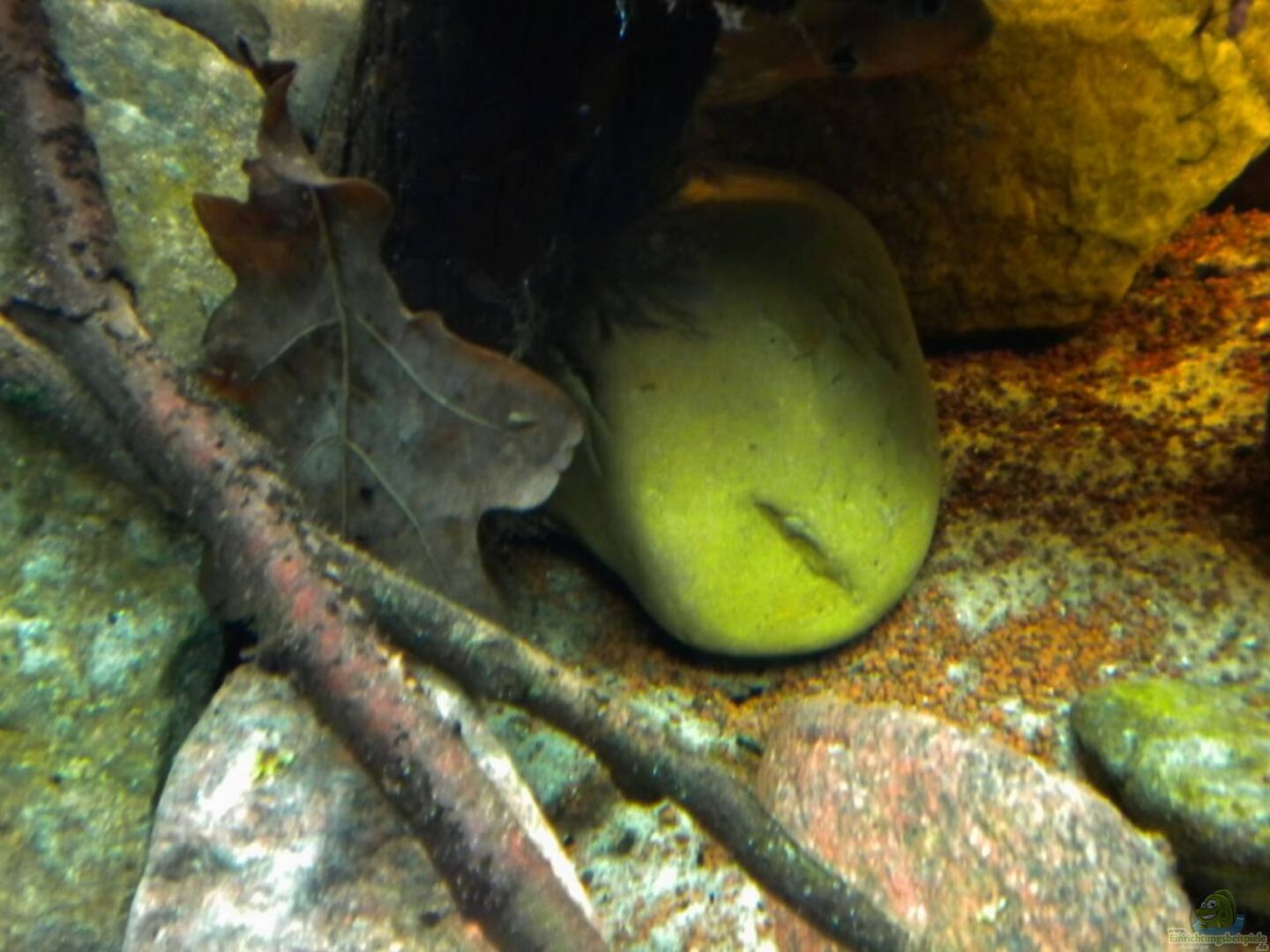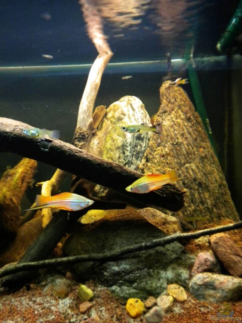 Dekoration erweitert: mehr kleine Kiesel, Treibholz! Videos hochgeladen: Beckenübersicht, Meeki-Weibchen bei der Nahrungsaufnahme!