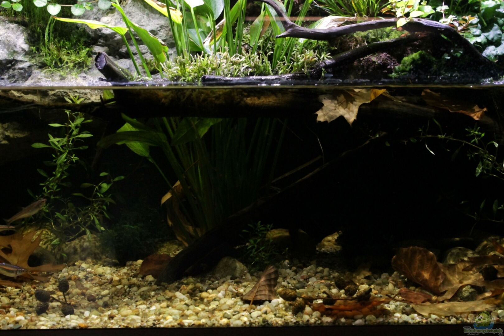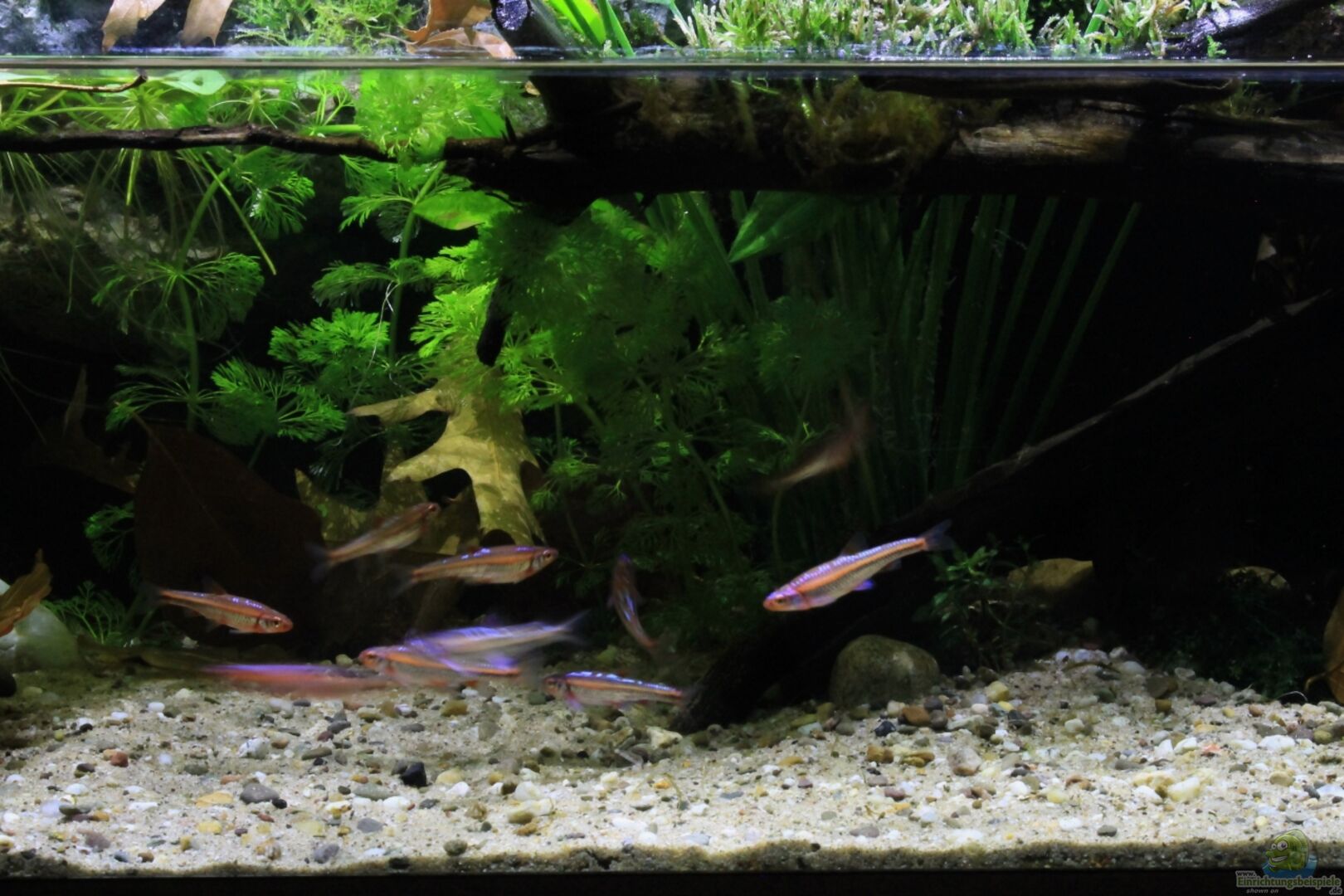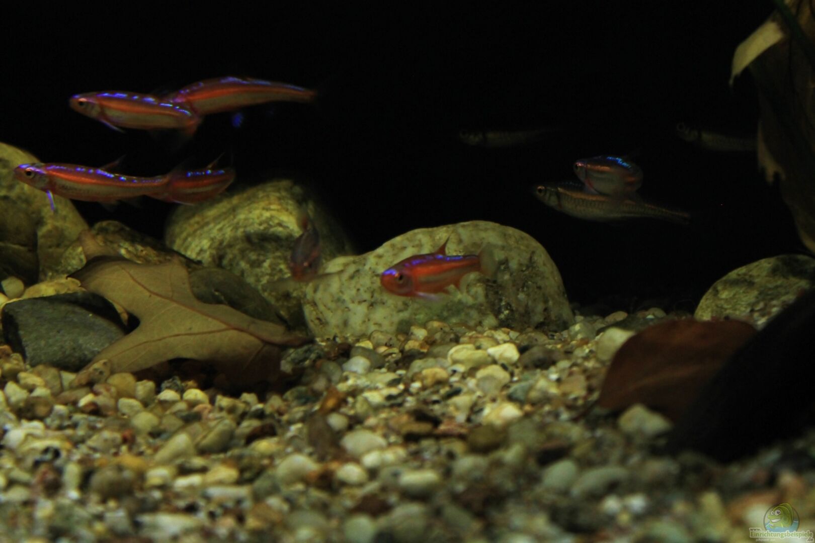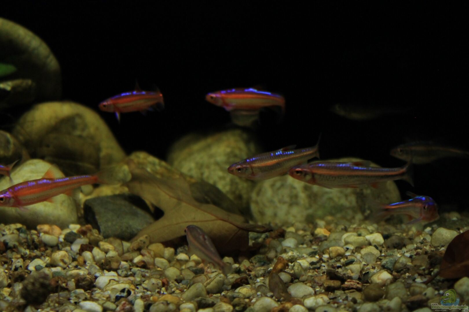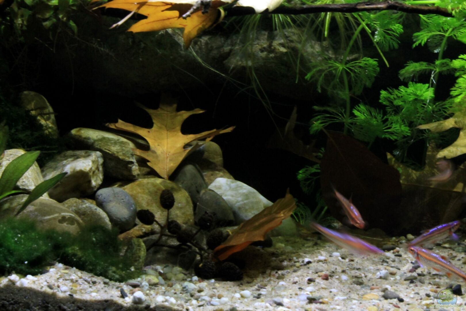 ein wenig Laub mit zu gegeben, dadurch mehr Natürlichkeit und auch Huminstoffe im Wasser, jetzt ist es nicht mehr so hell und siehe da, die Fische sind gerade mal 2 Tage im Becken und leuchten ohne Ende--neues HB--neue Besatzfotos--