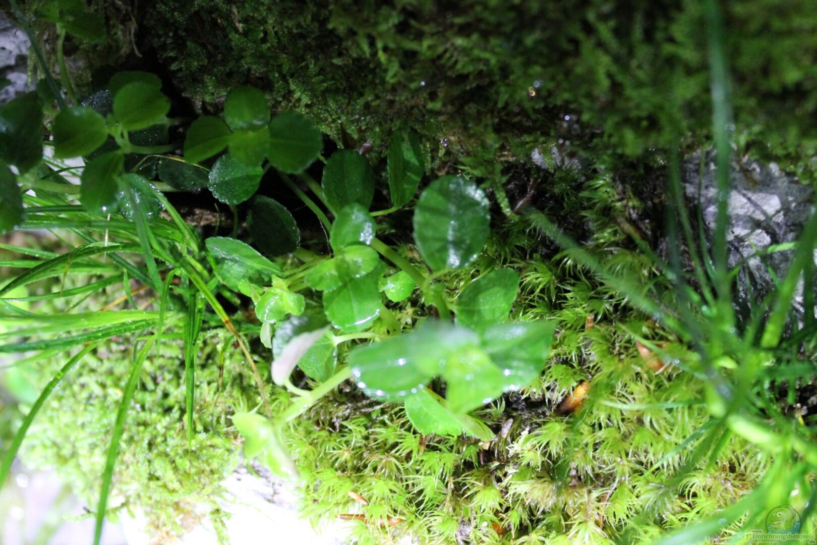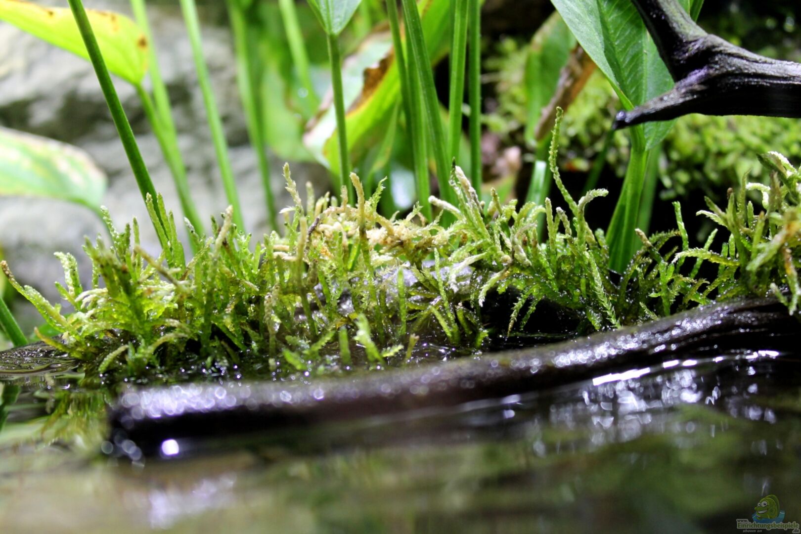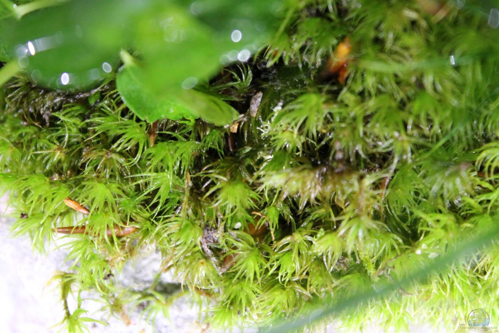 Monosolenium tenerum (dies war ein Moos Pad, ich habe es vom Gitter entfernt, in zwei Hälften geschnitten und auf zwei Kieselsteine gebunden.