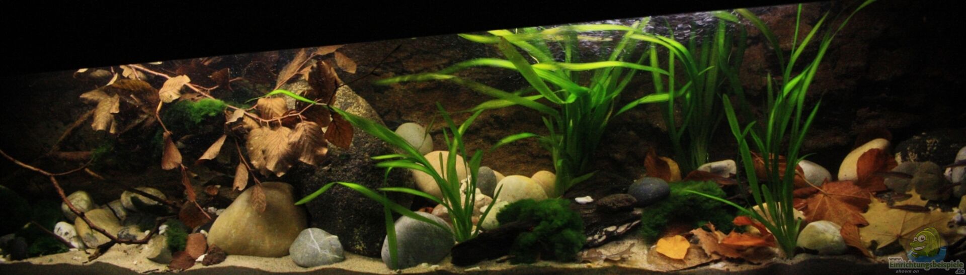 Ein Flusslauf in dem typischem Ambiente dieser Arten, Steinlandschaft mit ausgesuchten Pflanzen sowie etwas Holz und ??sten.ebenso Schattenzonen, Steinhaufen für die Notropis Chrosomus und die Springbarsche sollen hier das Hauptaugenmerk sein.