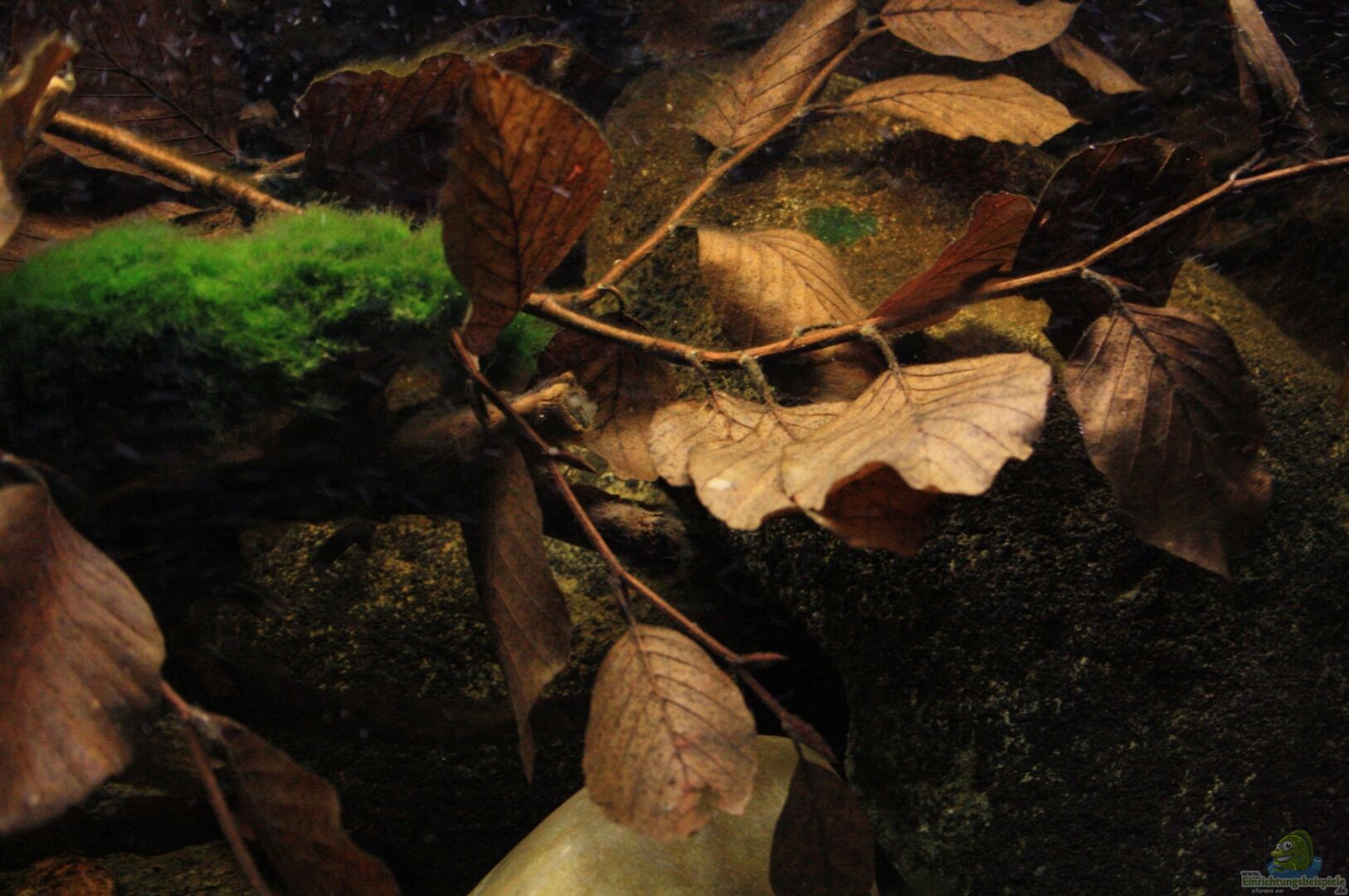 Einige ??ste der Buche, sowie ein grö??eres Stück Holz "Moorkie" welche am Boden liegt.Ebenso diverses Laub von Eiche, über Buche bis zu Ahorn liegt wahllos vertreut im Becken.