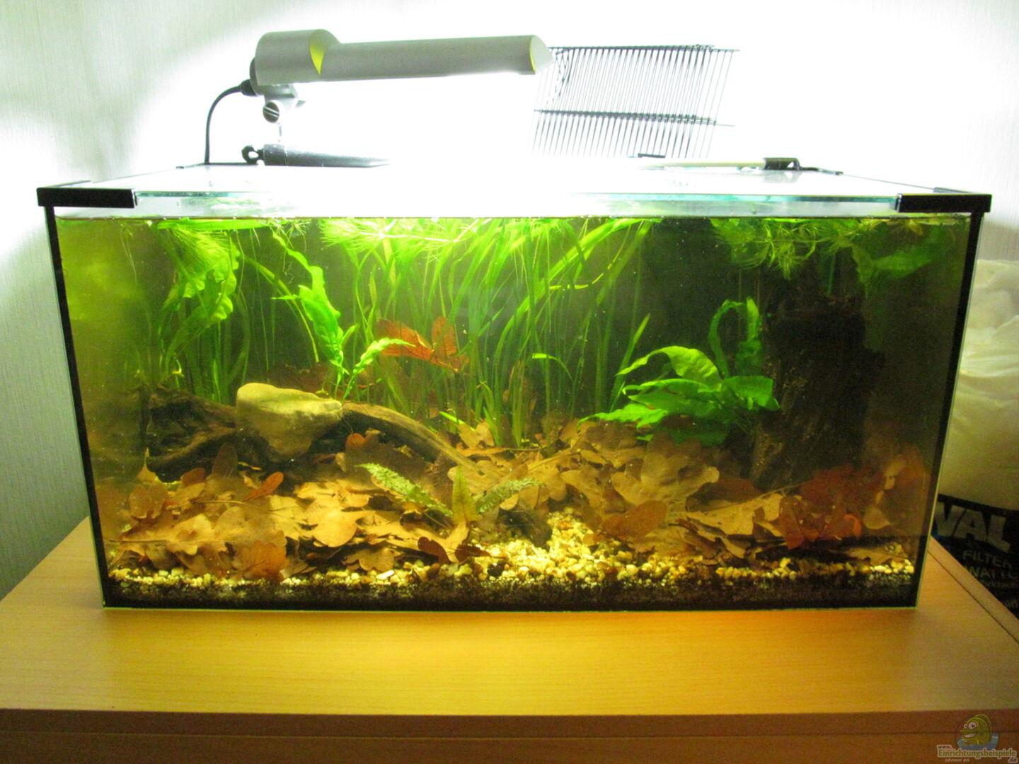 Ich wollte schon immer mal so ein Biotop nachahmen. Jedoch wollte ich nicht mein 240 liter Becken auf den Kopf stellen um dann zu sehen, dass es doch nichts für mich ist. Daher habe ich in klein angefangen. Und mir gefällt es recht gut, aber seht selbst.