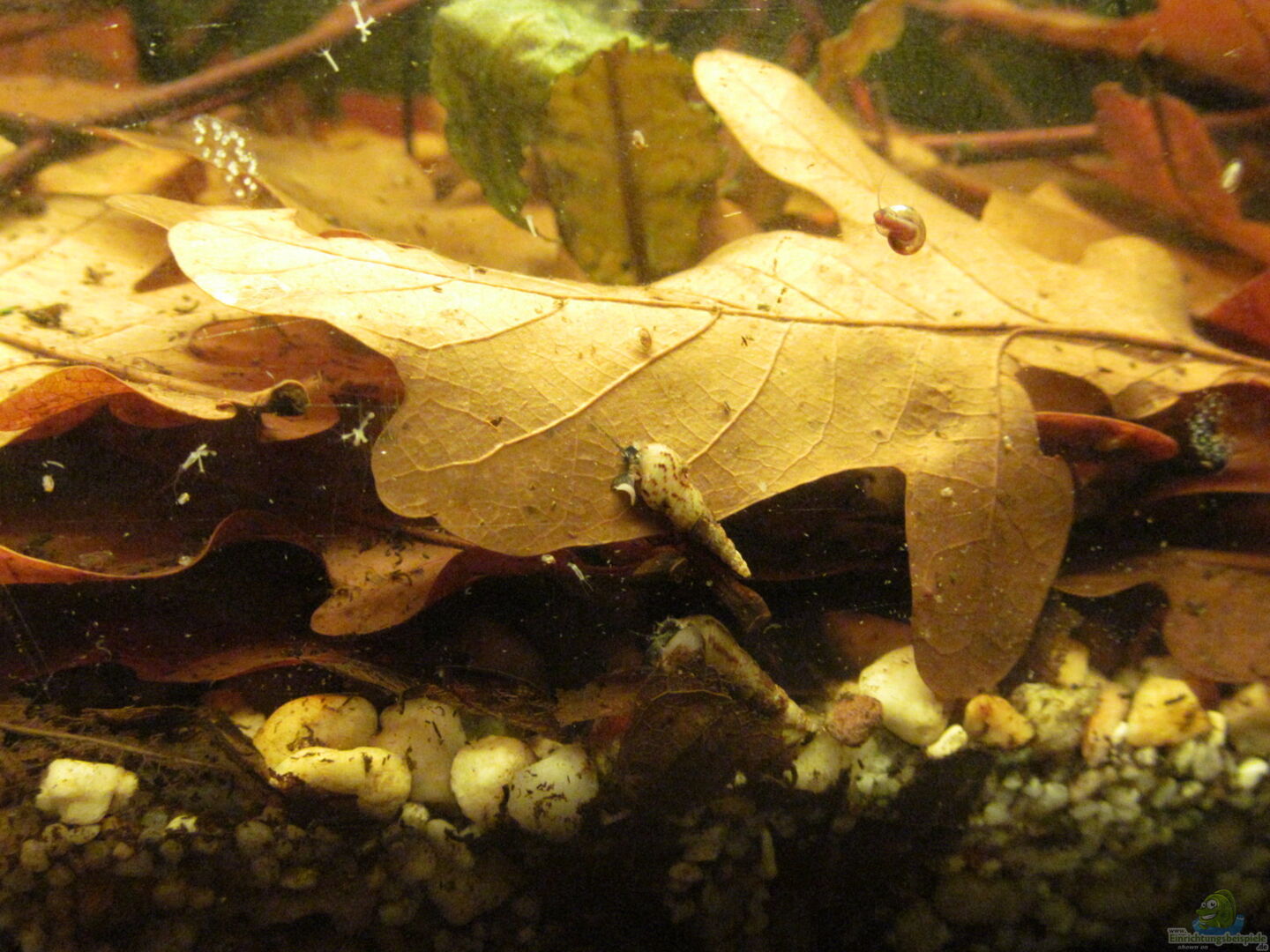 Als Effekt habe ich etwas mehr Eichenblätter genommen und im Aquarium versenkt. Diese wirken sehr gut als Verstecke und als Nahrung. Zudem habe ich mir aus dem Baumarkt Tontöpfe besorgt, damit die Krebse sich auch dort verstecken können.