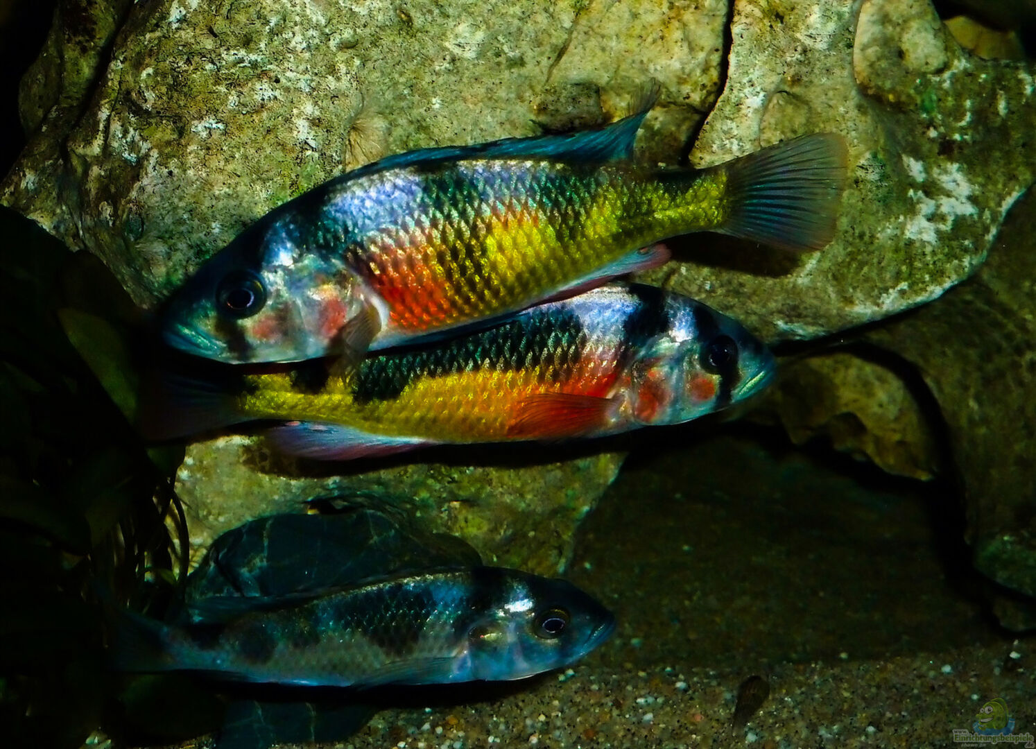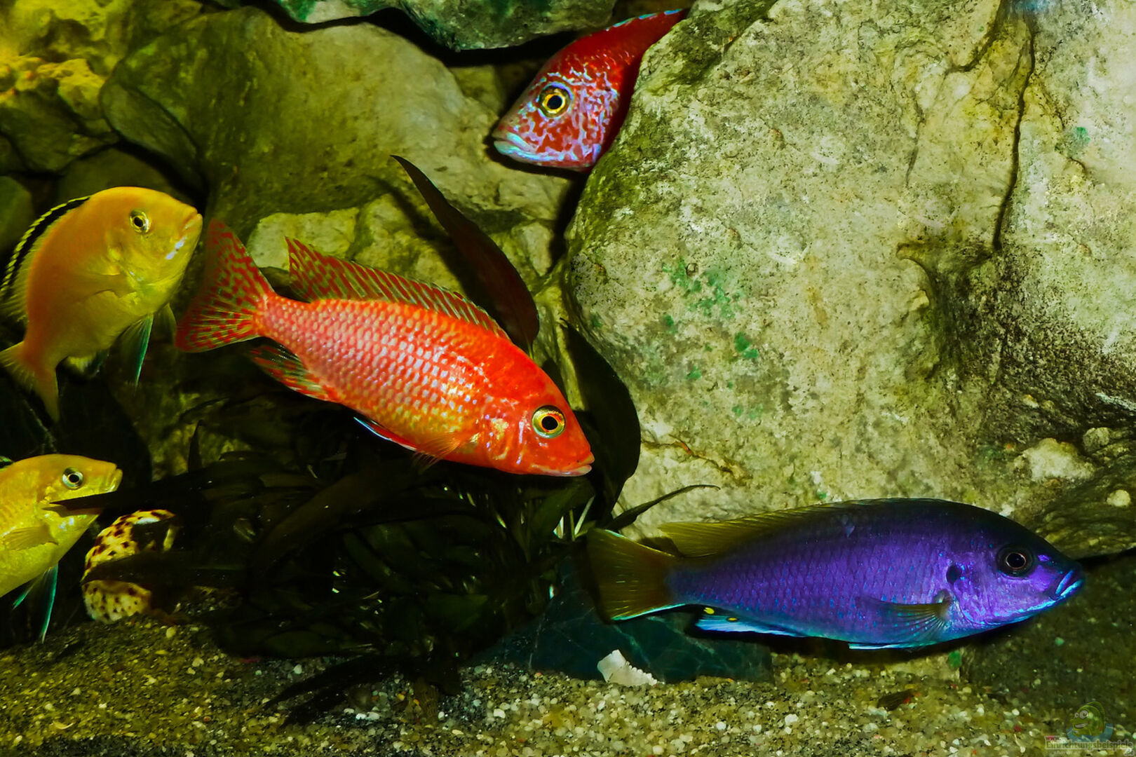 Der Besatz Mbunas und Non- Mbunas harmoniert sehr gut, da es alles sehr friedliche Arten sind. Die Arten lassen sich gegenseitig in Ruhe, auch innerhalb der Arten herrscht Frieden.