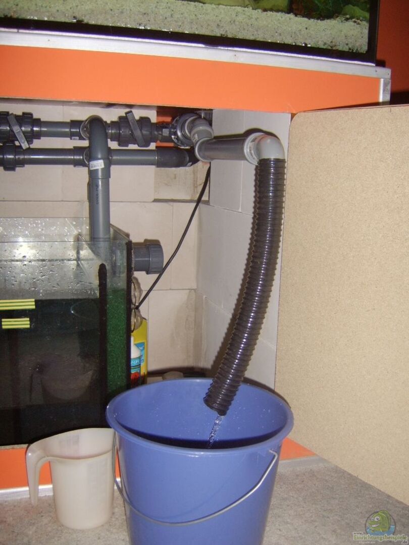 - habe gerade ein Bild reingestellt wie mein jetziger Wasserwechsel von statten geht. Werde in der nächsten Zeit die Technik verändern , in dem ich Löcher in die Decke bohre und einen Zulauf und einen Ablauf durch Verrohrung anschlie??e. Hat man keinen Trödel mehr mit dem Wasserwechsel. Und gleichzeitig wird ein Notüberlauf vom Filterbecken mit eingebracht.Der Tankstutzen dafür ist ja schon da e man auf dem Bild sieht. Da kann dann bei Stromausfall kein Wasser überlaufen.