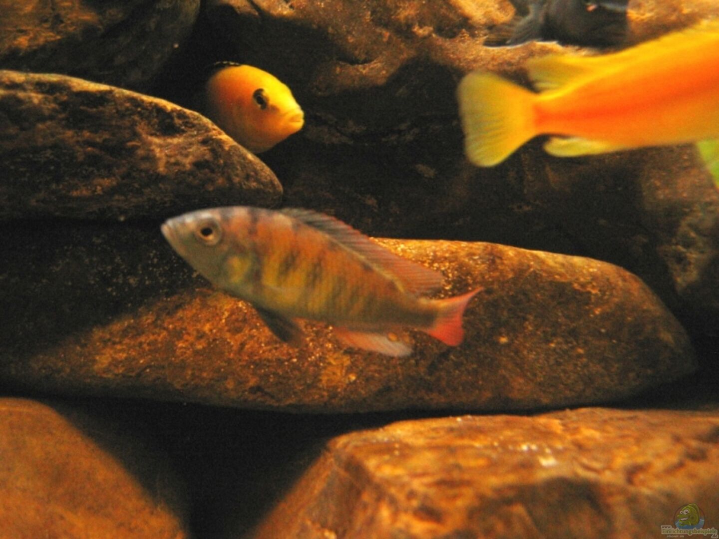 Die Haplochromis Obliquidens sind meinen Recherchen zufolge Hapl. sp. "Red Shoulder", leider nur mehr im Verhältnis 1/1 weil das Weibchen nach dem Ausbrüten der Jungen gestorben ist. Dafür gibts einige Kleine!