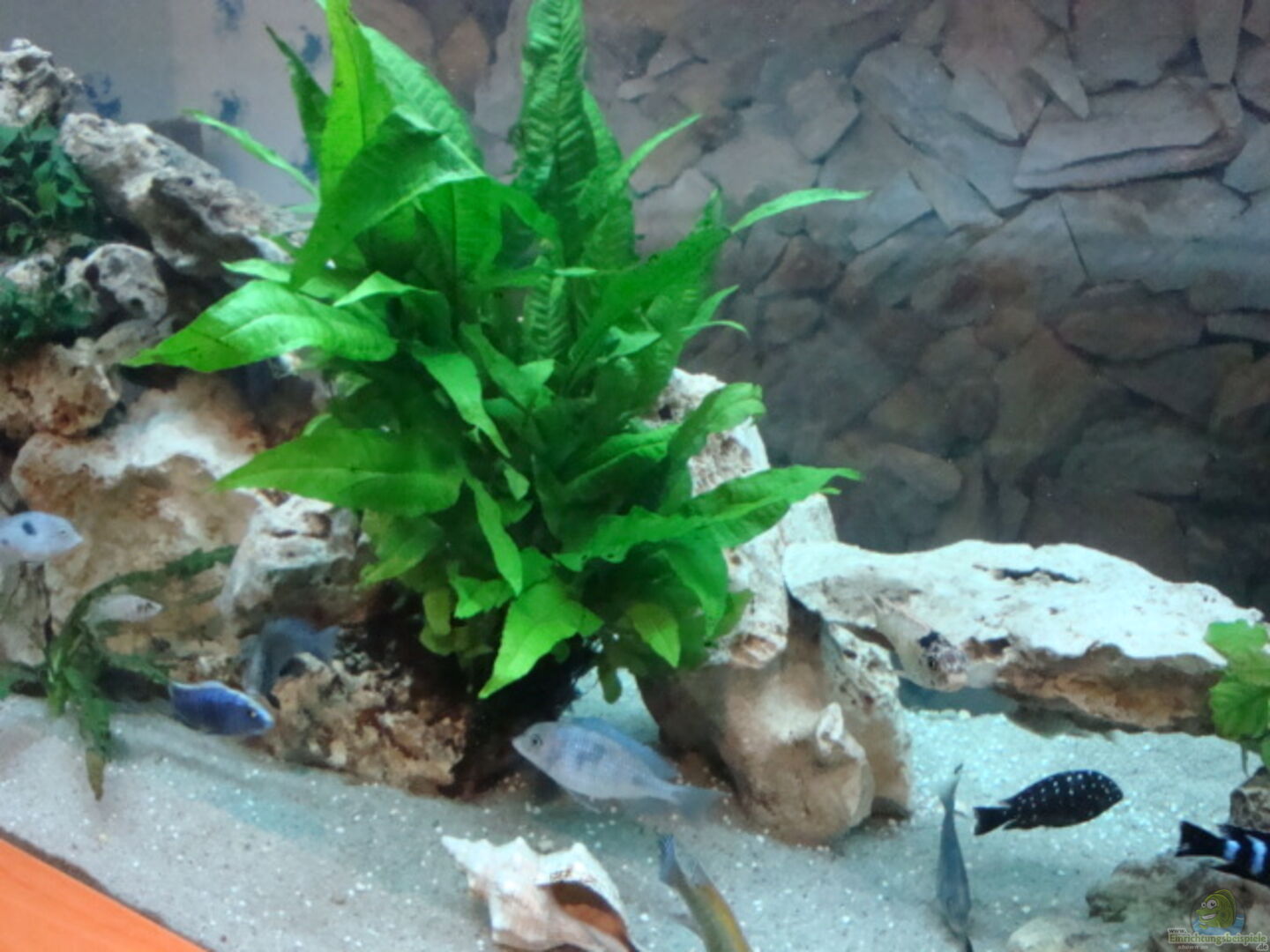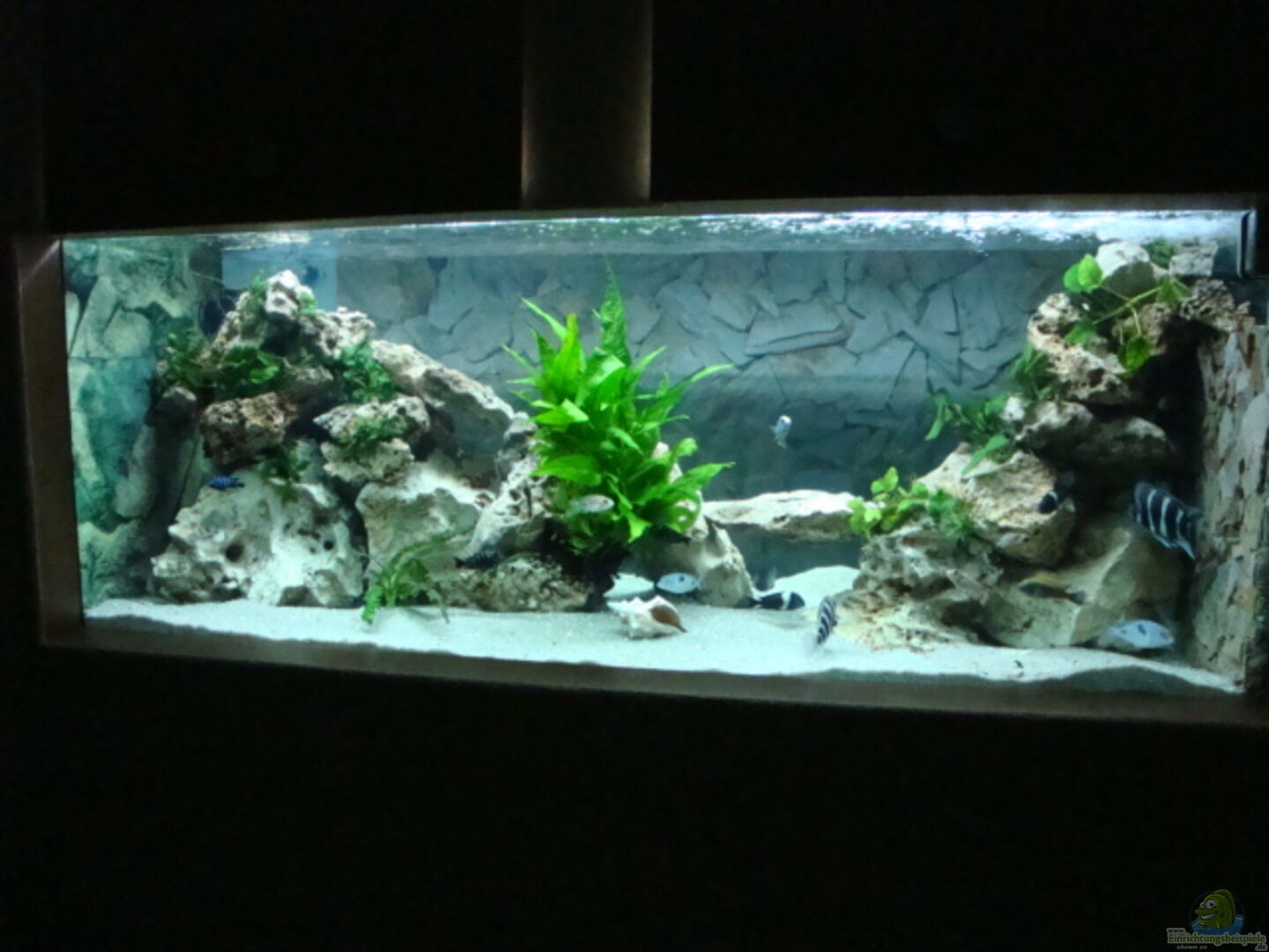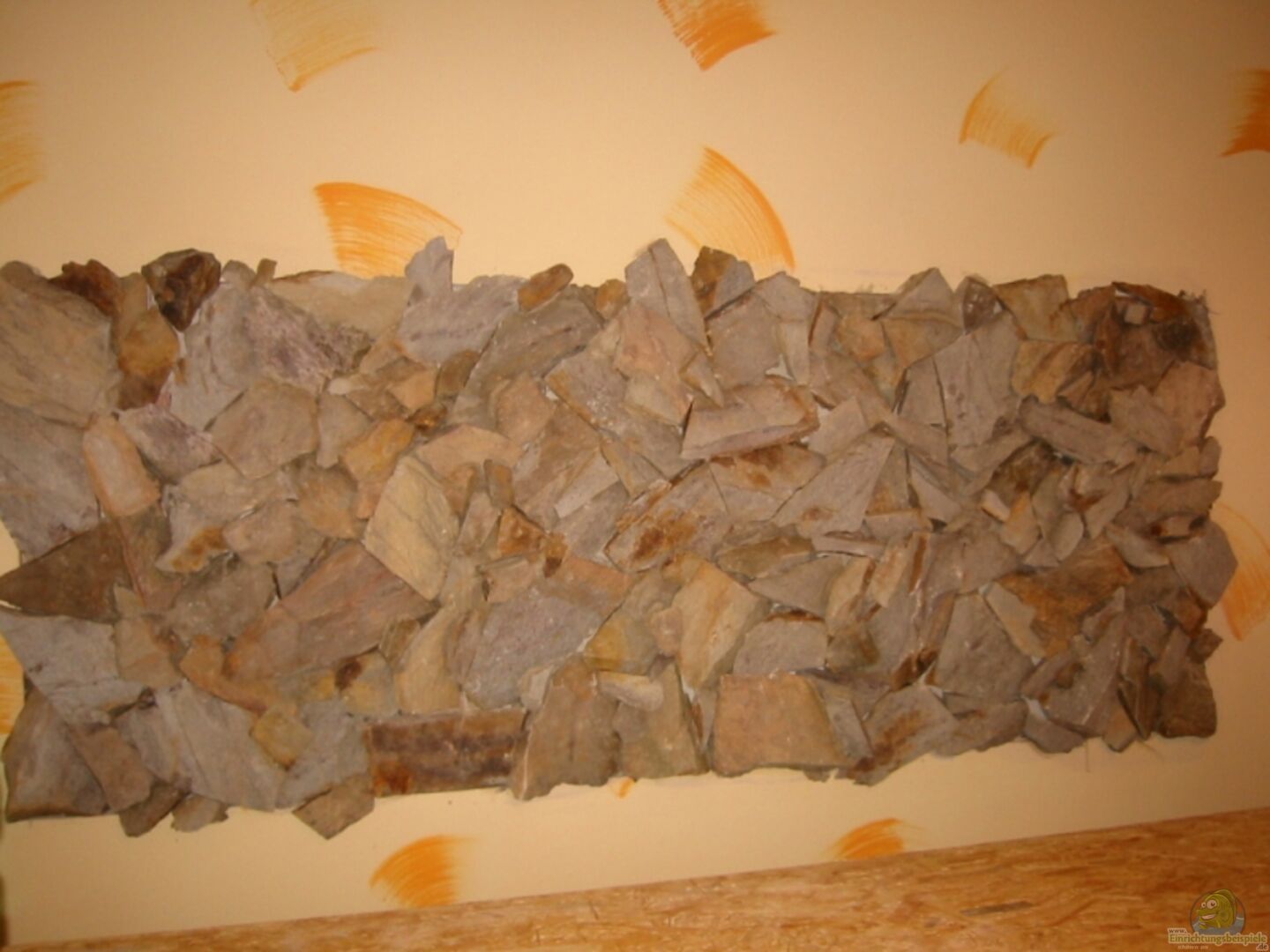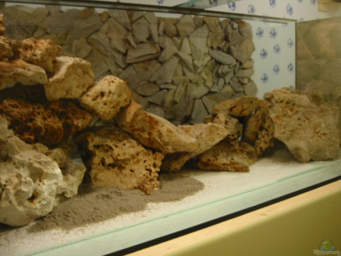 Die Steinrückwand wurde von mir hinter den Aquarium an der Wand angebracht und in den Putz eingelassen wird leider durch das Lochgestein ziemlich verdeckt aber macht sich sehr gut.
