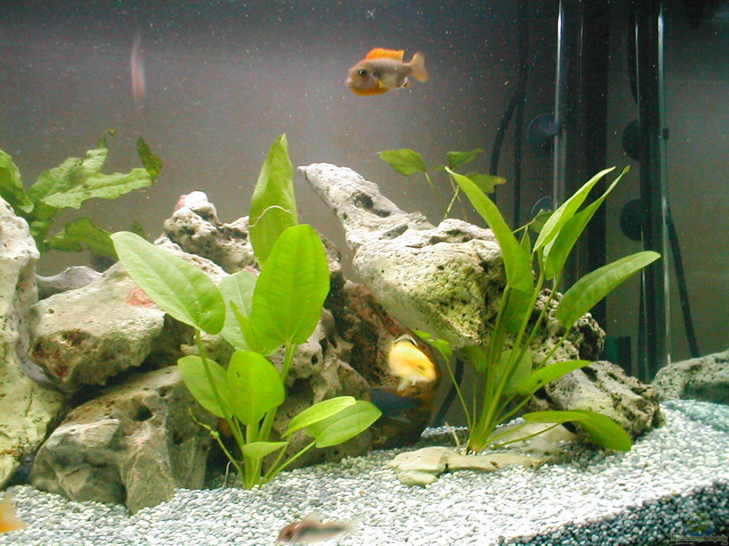 der Besatz ist leider eine Katastrophe. Was haben Panzerwelse, Gelbsaumwels und Antennenwelse in einem Malawibecken verloren? Bitte über die Ansprüche der "gepflegten" Arten gründlich informieren und den Besatz, Einrichtung, Futter, Wasserwerte... berücksichtigen. Ein Beispiel wie man es NICHT machen sollte.