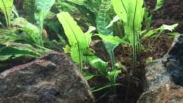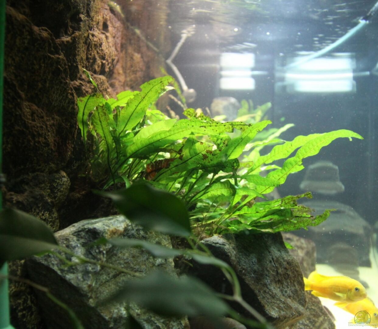 Mit Ihrer asiatischen Herkunft hat diese Pflanze eigentlich nichts in einem Malawi-Becken zu suchen, wegen Ihrer Robustheit und Anpassungsfähigkeit an alle Wasserbedingungen, wird Microsorum pteropus aber gerne von ???nicht auf Pflanzen verzichten wollende??? Malawiaquarianer eingesetzt.