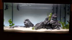 Sehr schönes Aquarium stellst du uns vor. Das befindet sich offenbar noch in der Einlaufphase ohne Besatz. Das ist gut und ich würde da gerne noch ein paar Ansätze zum Nachdenken dalassen: Das Aquarium ist für Malawis gerade mal noch so irgendwie geeigent. Wenn du eine kleine Mbuna-Art einsetzen wollen würdest, sollten noch mehr Steinaufbauten rein. Wenn du das Aquarium so lassen willst und das könnte ich gut verstehen, weil dir die Einrichtung absolut geglückt ist, dann würde ich eher kleine Cichliden aus dem Tanganjikasee empfehlen. Ich könnte mir vorstellen, dass du an denen dauerhaft mehr Freude hättest, denn bei denen gibt es mehr Auswahl an Arten, die auch in so einen kleinen Aquarium sehr gut gehalten werden können.