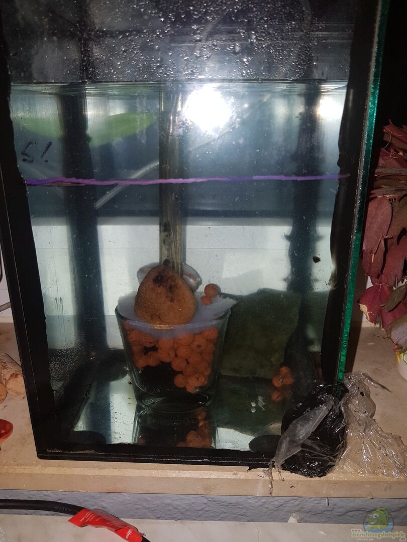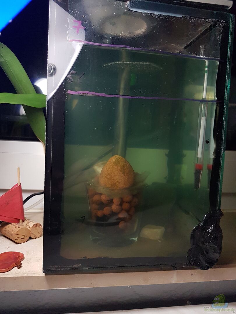 Werde sie erst in einer Aufzuchtsflasche schlüpfen lassen und dann ohne den Müll umfüllen ins Becken.