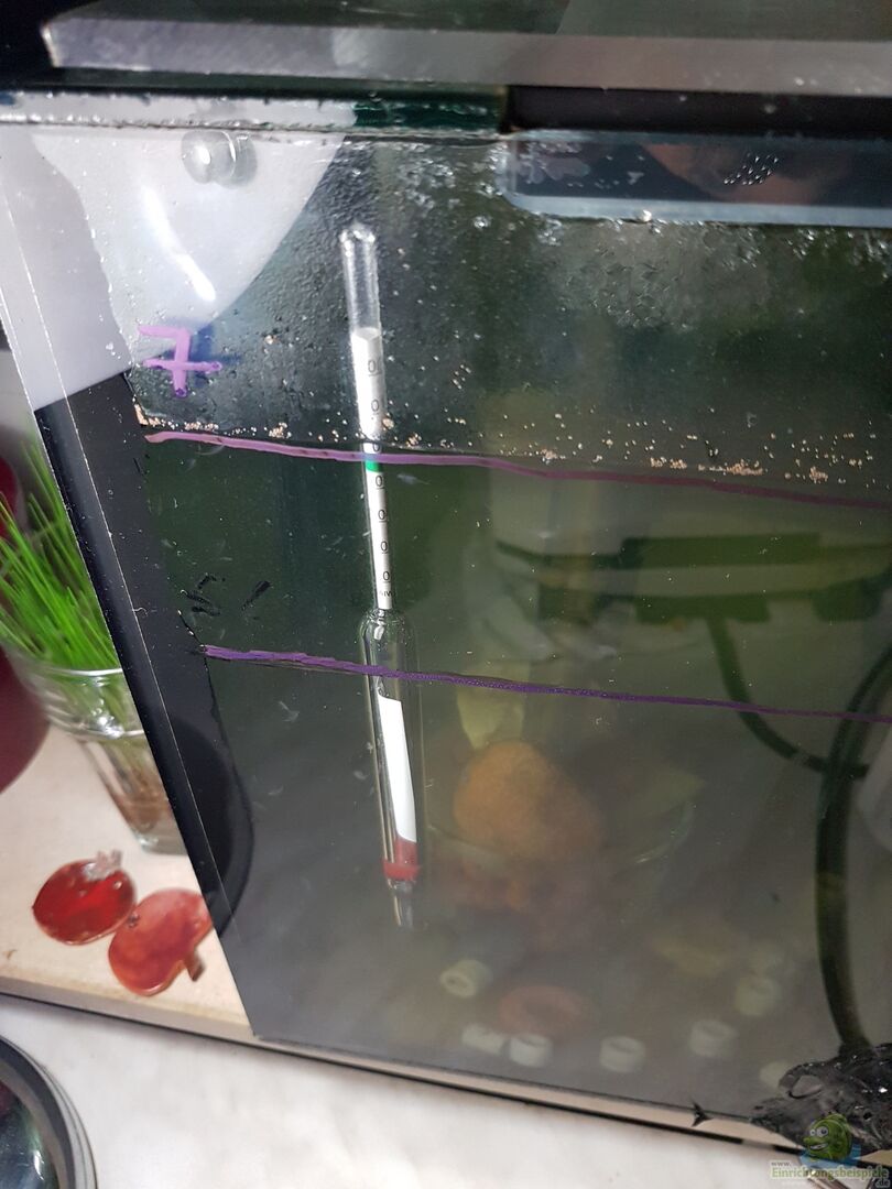 Markierungsline der Wasseroberfläche beim Einrichten gezogen. Heut etwas Wasser nachgegeben.