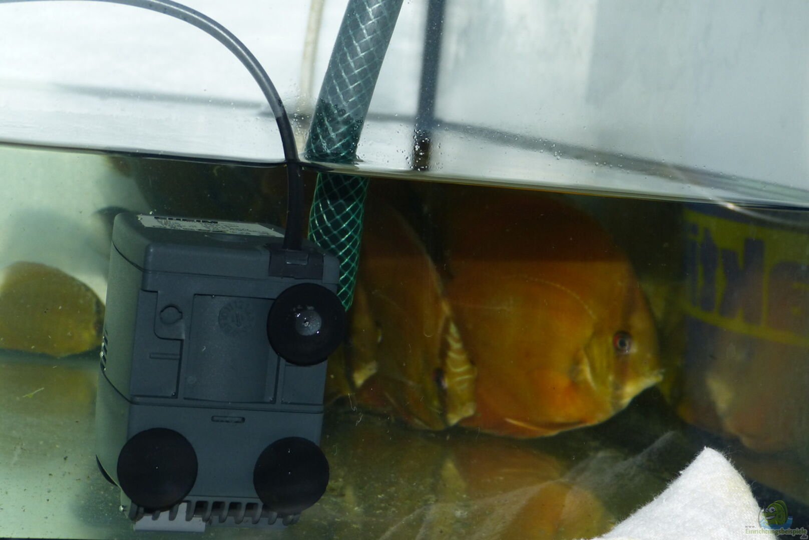 Jeden Tag wird der Kot abgesaugt und dabei ca. 50l Wasser gewechselt. Zusätzlich 1x/Woche 70-80% Wasserwechsel.