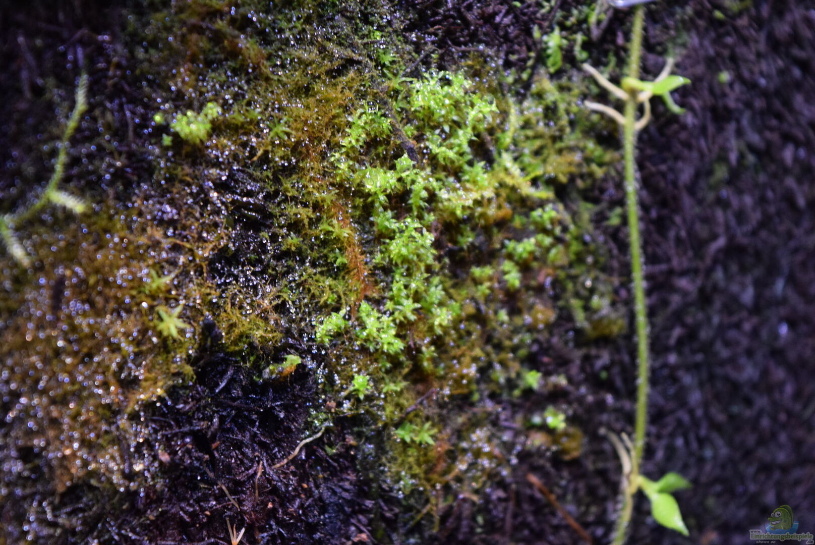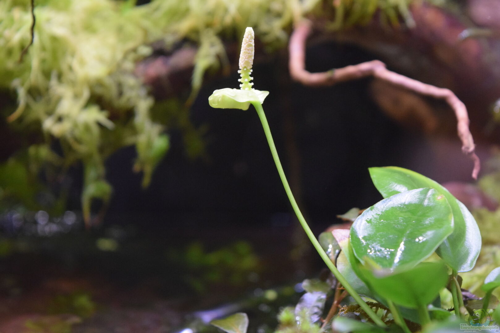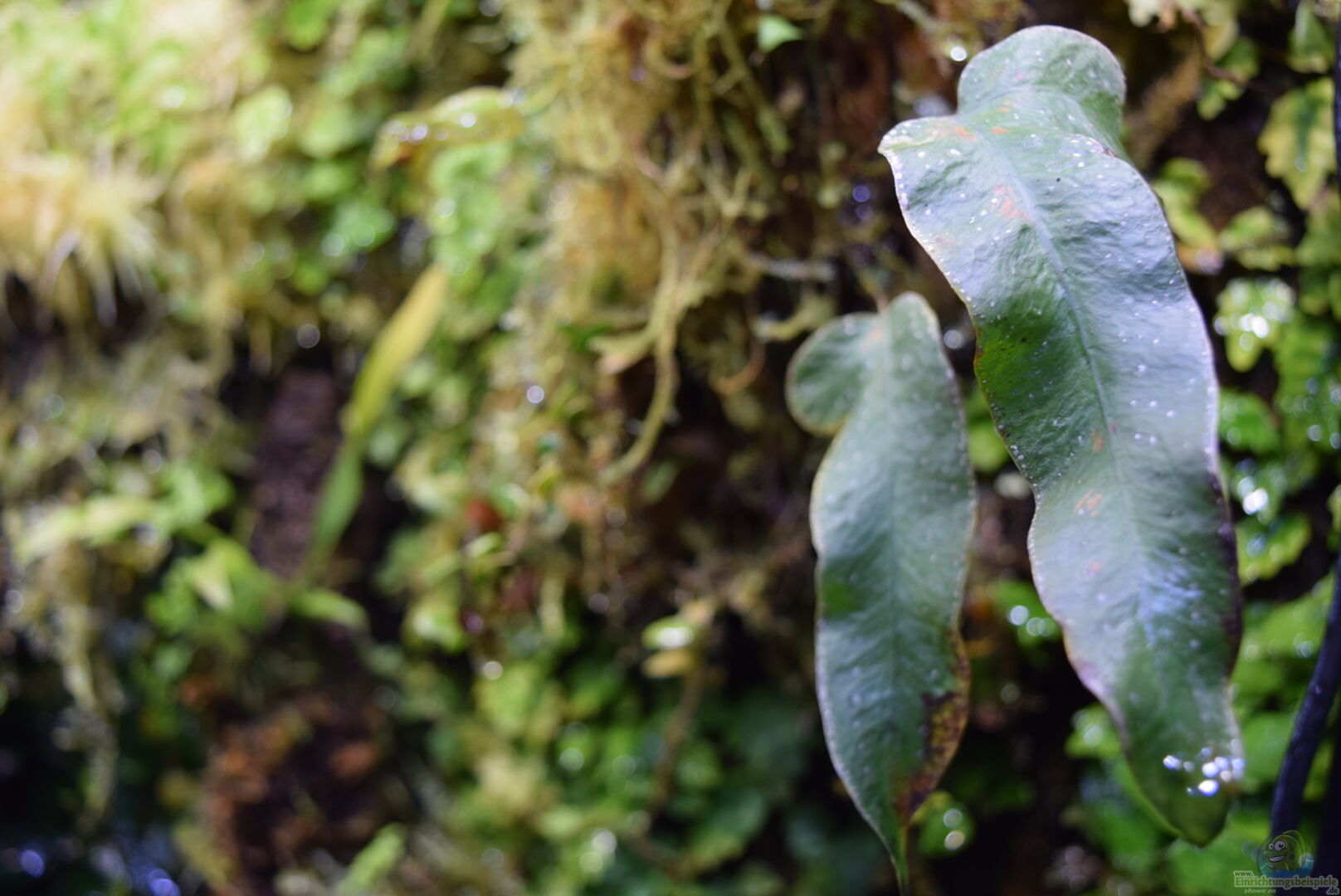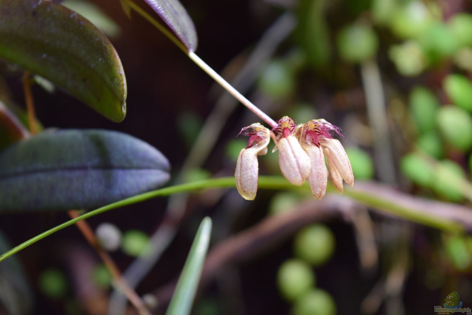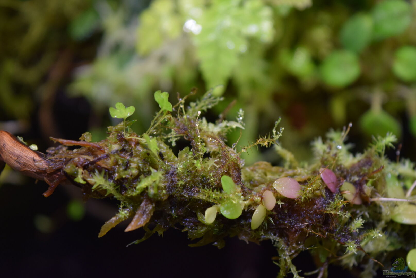 Neoregelia green pointet, Neoregelia schultesiana purple red, Epidendrum Porpax, Dischidia hirsuta, Microgramma reptans, Peperomia rostrata, Epidendrum cochleatum, , Gomesa radicans, Dendrobium wassellii, Barbosella cogniauxiana, Sphagnum-Moos, Ficus quercifolia, Hygrophila "Siamensis 53B", Microsorum pteropus 'Narrow' , Echinodorus schlueteri Leopard , Juncus Repens , Alternanthera reineckii "Rosaefolia", Restrepia trichoglossa, Stelis sp., Peperomia hoffmanii