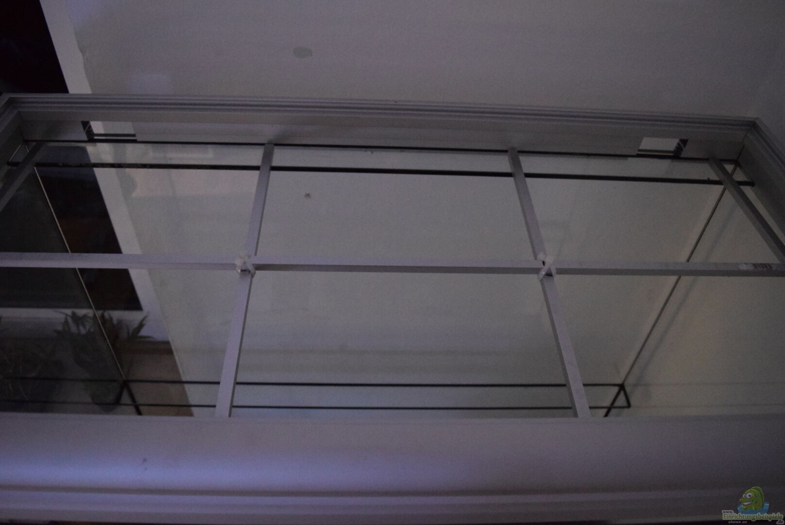 Sonderanfertigung von Aquarien und Terrarienbau Jebramek in Nürnberg. Der Wasserstand beträgt 35 cm. Ein mit Kabelbindern zusammen gebundenes Aluminium-Gestell befindet sich in der Abdeckung und fungiert als Decke, um darin Wurzeln anzubinden, die ebenso mit Kabelbindern zusammengehalten werden