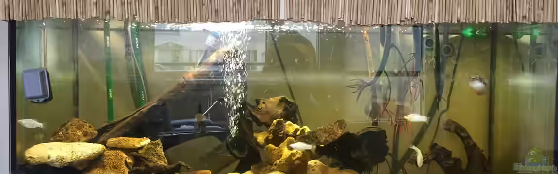 Da ich den Wasserstand nicht für die Mangroven soweit absenken wollte, habe ich sie an Stegen am Deckel sowie an Saugnäpfen befestigt und warte bis diese festgewachsen sind. Sollte das passieren, kommt ein Teil der sonstigen Einrichtung raus.