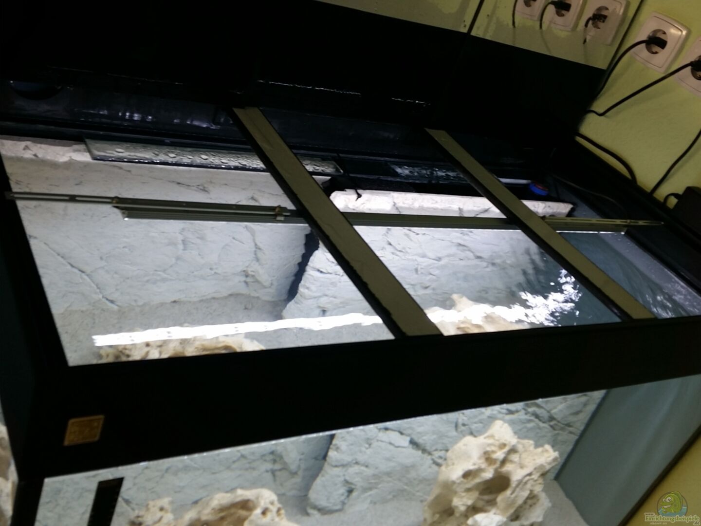 Das Aquarium dient ausschlie??lich für meine Tropheus Nachzuchten und ist eine Kombination aus Becken und Abdeckung von WOHA, welches ich günstig gebraucht gekauft habe. Es hat den Platz im Hobbyraum des Kellers gefunden, die Unterkonstruktion besteht aus verputzten Ytong Steinen, darauf liegt eine Küchenarbeitsplatte und eine Styrodurplatte als Unterlage des Beckens.