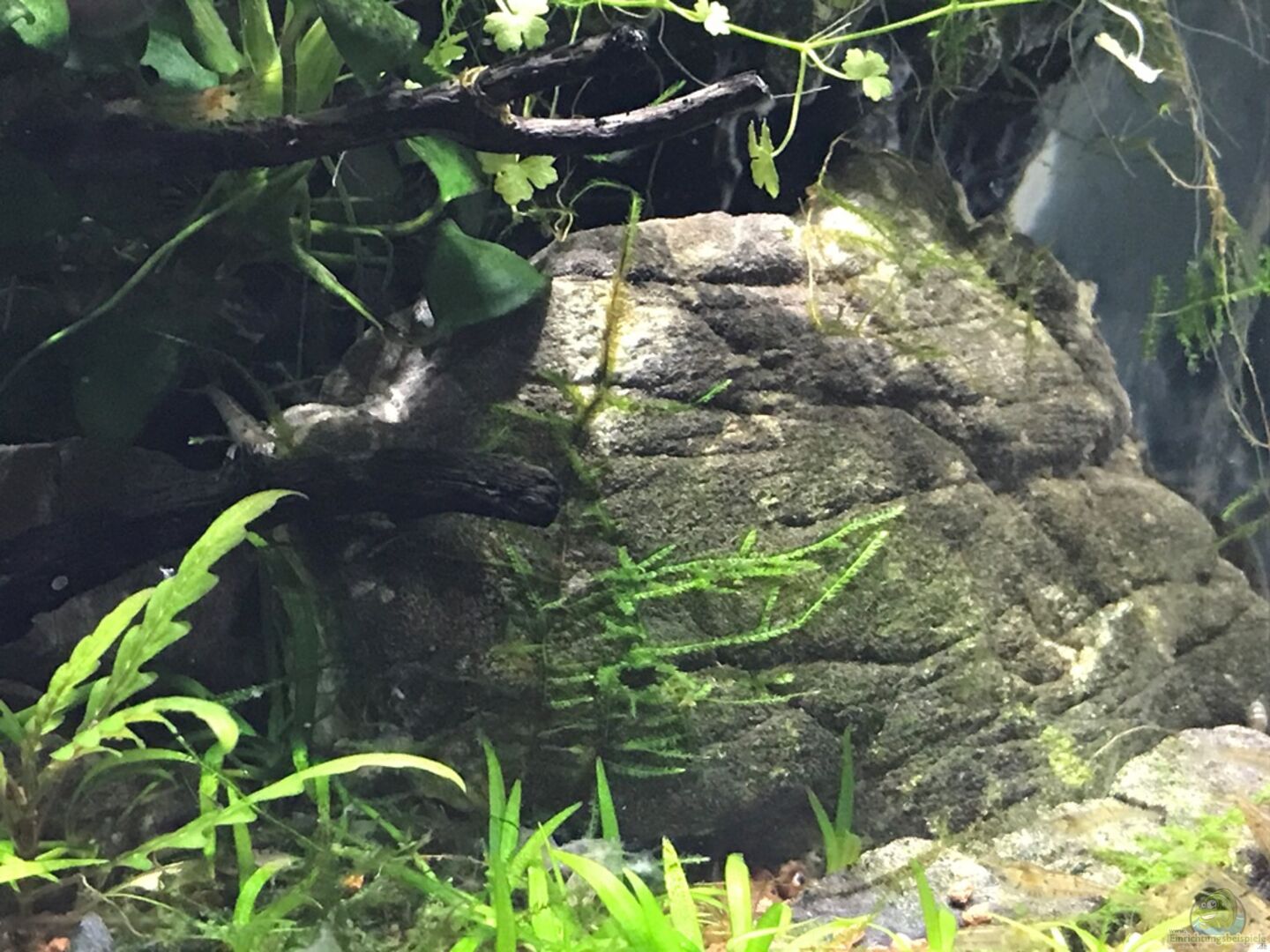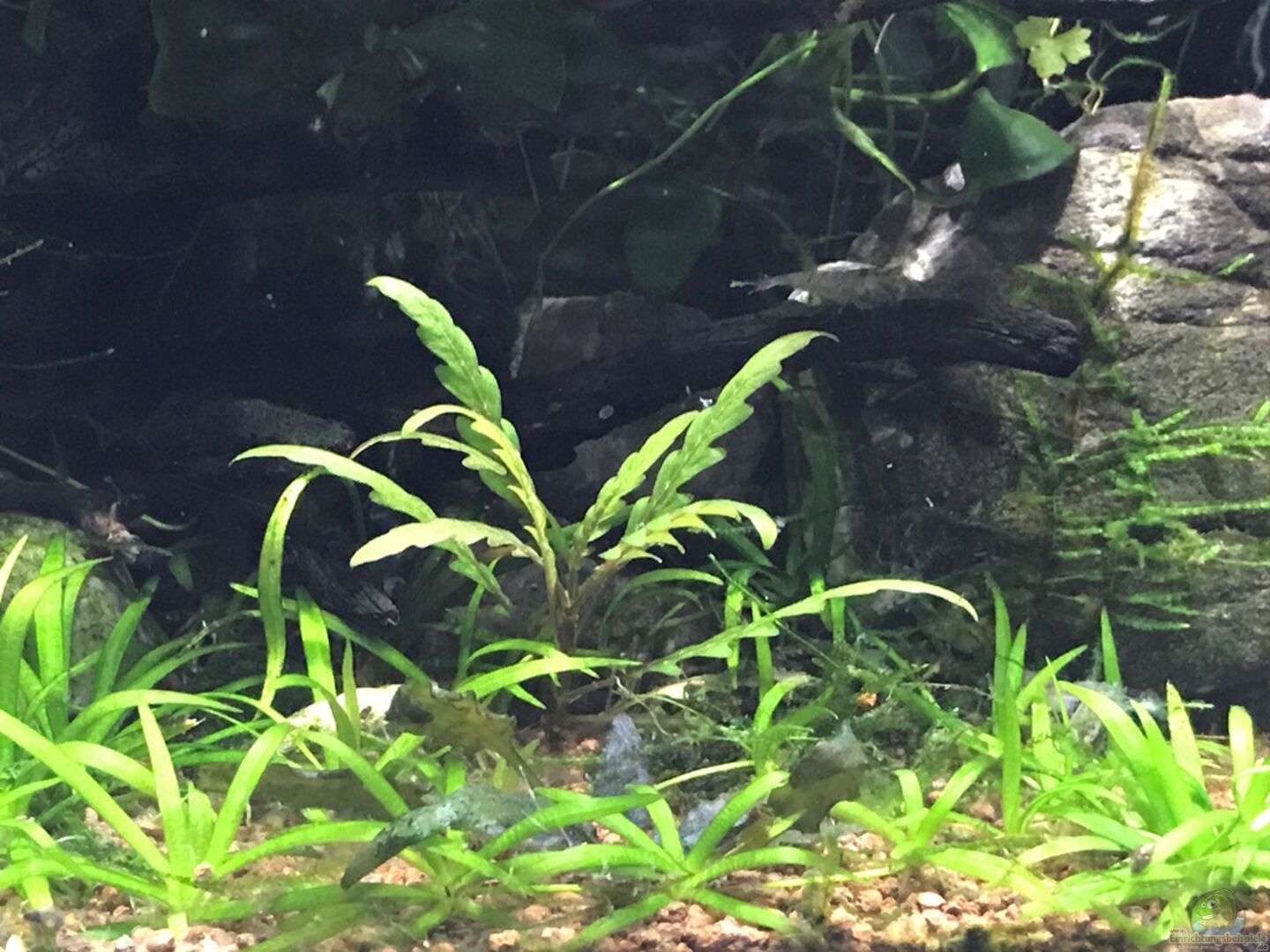 Wasserteil: Cryptos, Helanthium tennellus, Hygrophila pinnatifida, versch. Moosarten