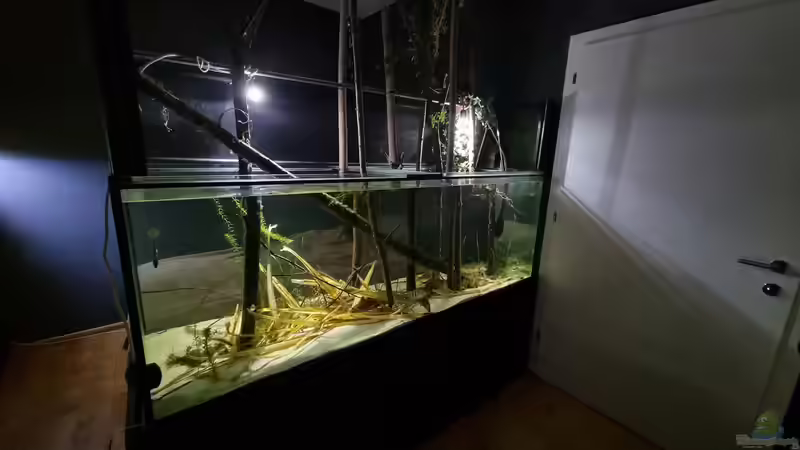 Beleuchtet wird das Becken nur mit zwei 5 Watt LED Spots aus der Terraristik.