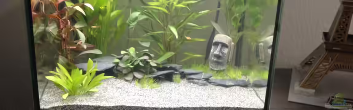 Optisch sieht dein Nanoaquarium schon mal gut aus. Ich nehme mal an, dass das noch nicht lange läuft uns sich das Erscheinungsbild durch den zu erwartenden Pflanzenwuchs noch ändern wird.