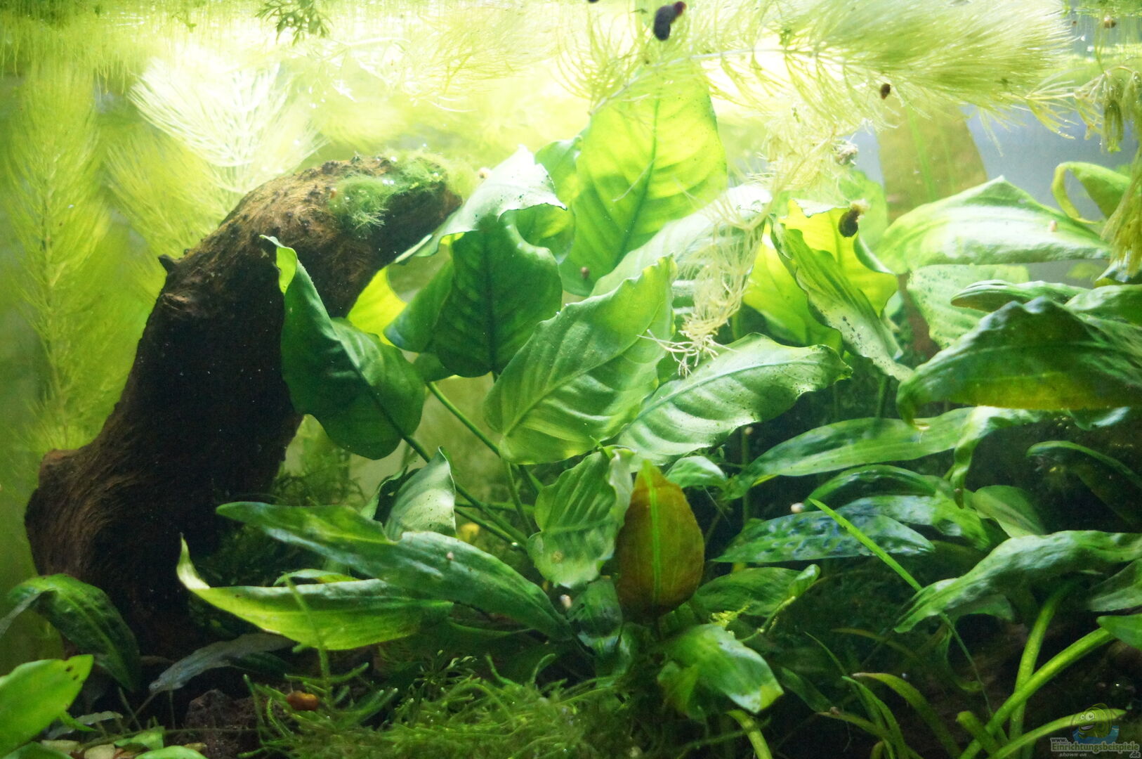 Puuuh, definitiv eine Anubias (welche genau, keine Ahnung), Wasserlinsen, Moosbälle, Sü??wassertang, Cryptocorynen (auch keine Ahnung welche), Blütenstielloser Sumpffreund und wahrscheinlich flutendes Pfeilkraut. Weiterhin Hornkraut und Javamoos. Kann sein, dass noch mehr drin ist, kann nicht alles einsehen.
