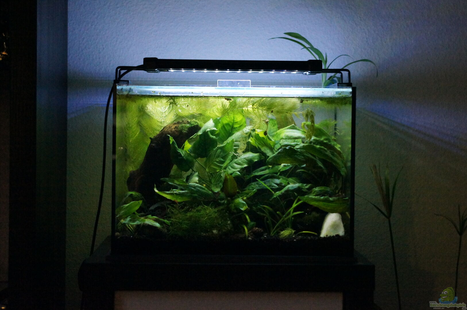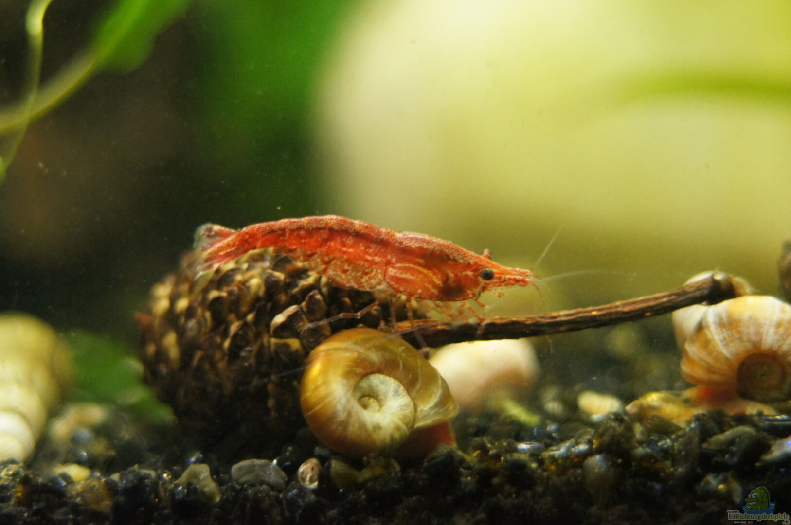 Habe 6 Red-Fire-Garnelen drin (meine ersten Garnelen) und das spielte mir perfekt in die Karten, da ich das Becken eh technikarm betreiben wollte, wobei ich auf die Beleuchtung nicht verzichten möchte.