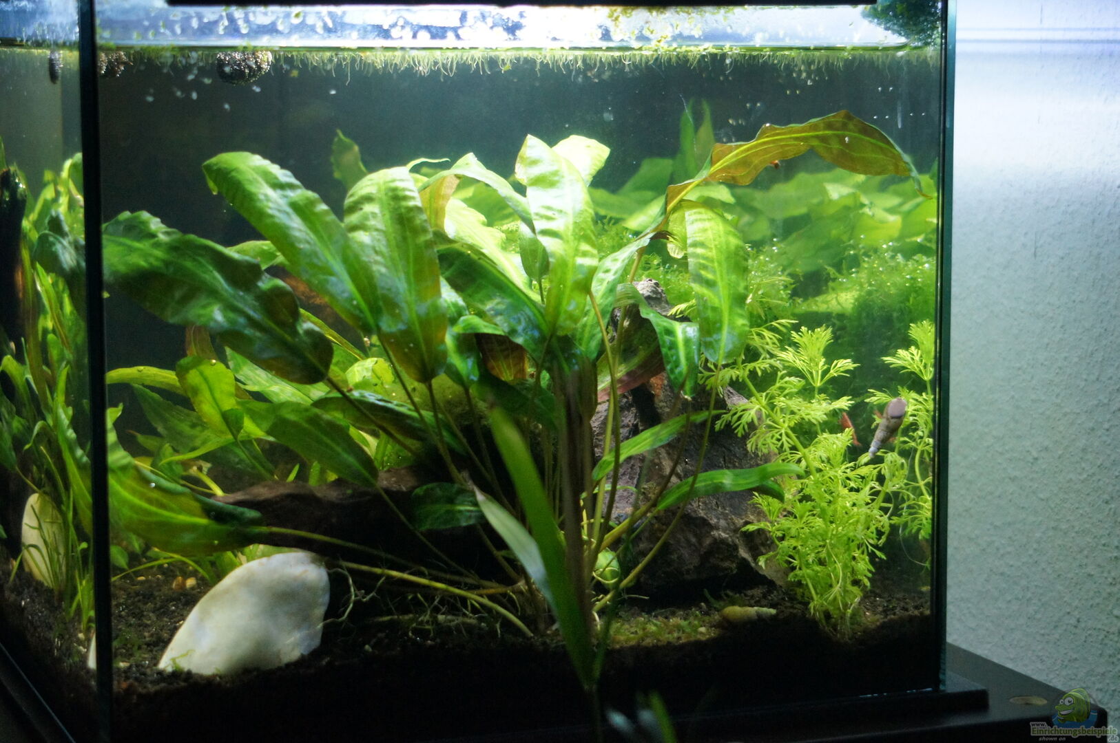 ??ber ebay-Kleinanzeigen bin ich an dieses Schätzchen gekommen, für 30??? inklusive Pflanzen und Besatz (wobei ich Endler-Guppys, einen Antennenwels und den Filter direkt wieder weggegeben habe). Erstanden aus einer Garnelenzucht, die aufgelöst werden sollte.